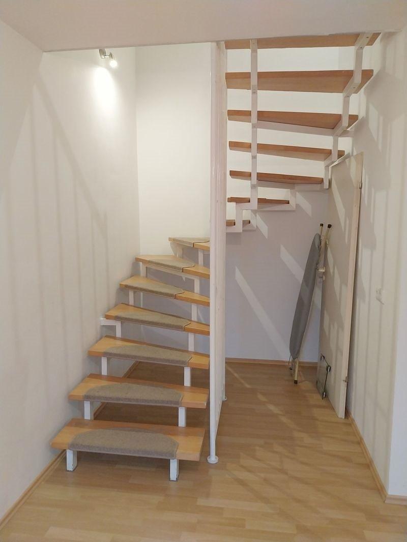 Die Wohnung im 1. Obergeschoss bietet mit 116m² auf 2 Stockwerken einen Vorraum, ein Bad mit Dusche, ein großes Wohnzimmer, ein Arbeits- oder Esszimmer, eine Küche, 3 Schlafzimmer, eines davon mit Balkon, ein Ankleideraum und ein Bad mit Badewanne. Diese Wohnung ist ab dem 01.02.2026 für 1.050,-€ vermietet.