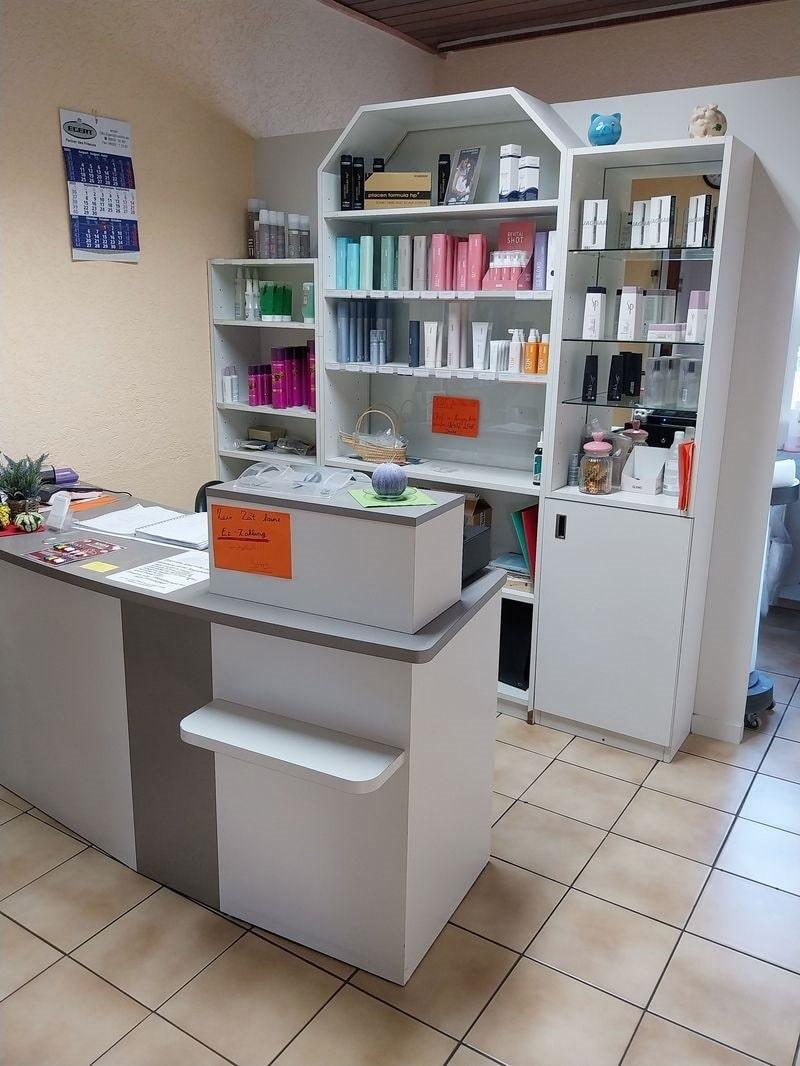 Im Erdgeschoss des Grundhauses befindet sich auf ca. 69m² ein Frisörsalon mit einem großen Frisierbereich mit Empfangstheke und Vorbereitungsraum, einer Teeküche mit Terrasse, einem Gäste-WC und einem Duschbad.