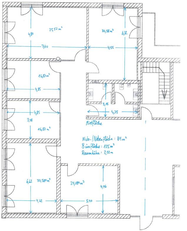 Hier erhalten Sie insgesamt 6 repräsentative Büroräume in einer Gewerbeeinheit in Marklkofen mit 17 - 36 m² je Büroraum, zzgl. Anteil an den Gemeinschaftsflächen (Empfangsbereich, Flur, WC, Teeküche)