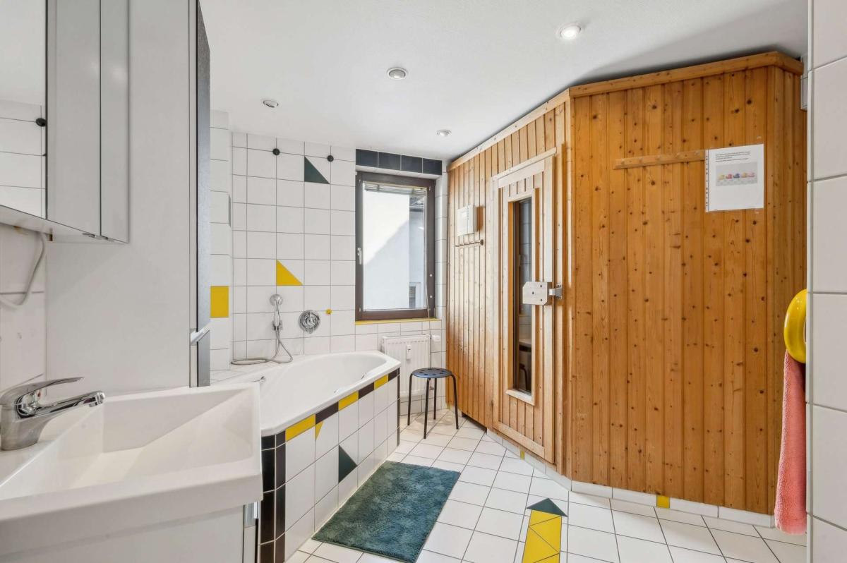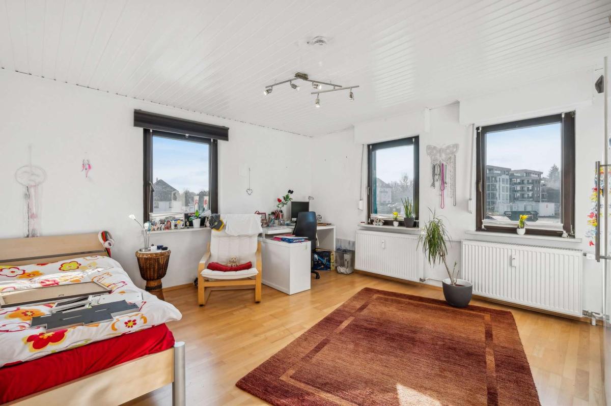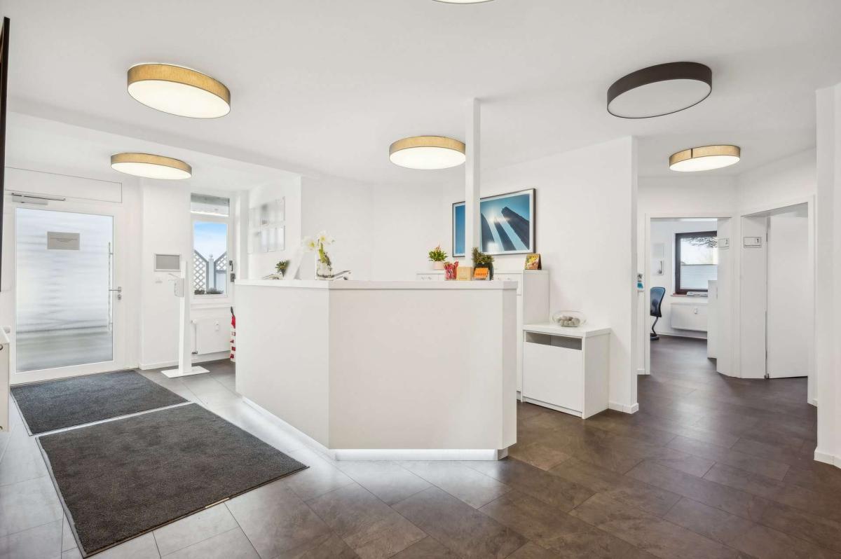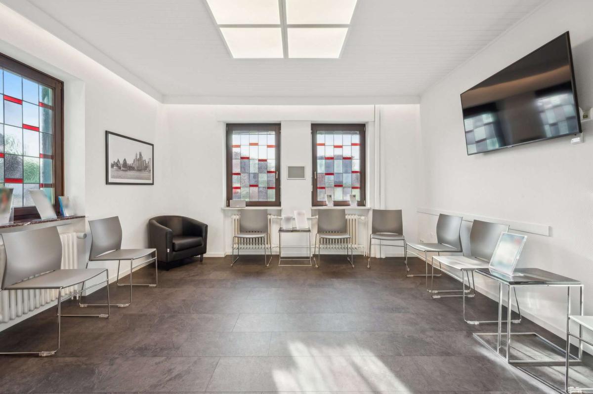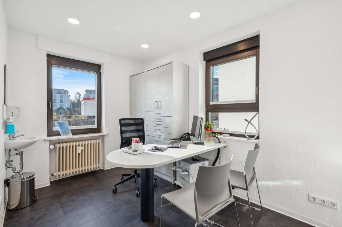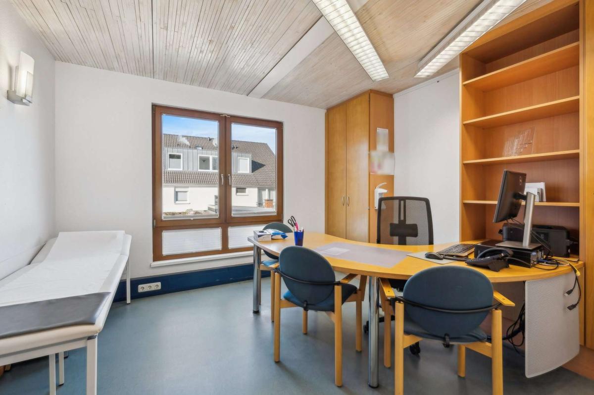 Das Vorderhaus (Ursprungsbaujahr ca. 1902) wurde zwischen 1989 und 1994 umfassend kernsaniert, erweitert und aufgestockt. Es ist voll unterkellert und befindet sich dank kontinuierlicher Modernisierungen in einem sehr gepflegten Zustand. Die Heizungsanlage wurde 2014 erneuert. Im Erdgeschoss ist eine Arztpraxis untergebracht, die 2019 umfassend renoviert wurde; der Mietvertrag läuft bis zum 31.12.2029 und bietet damit langfristige Planungssicherheit. Die Ober- und Dachgeschosse sind wohnwirtschaftlich genutzt und an einen sozialen Träger im Rahmen einer Behinderten-Wohngemeinschaft vermietet. Diese Nutzung sorgt für eine nachhaltige Belegung und stabile Strukturen. Fünf Außenstellplätze sowie eine Garage runden das Angebot ab.