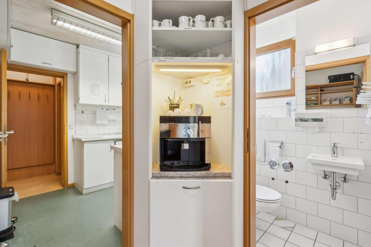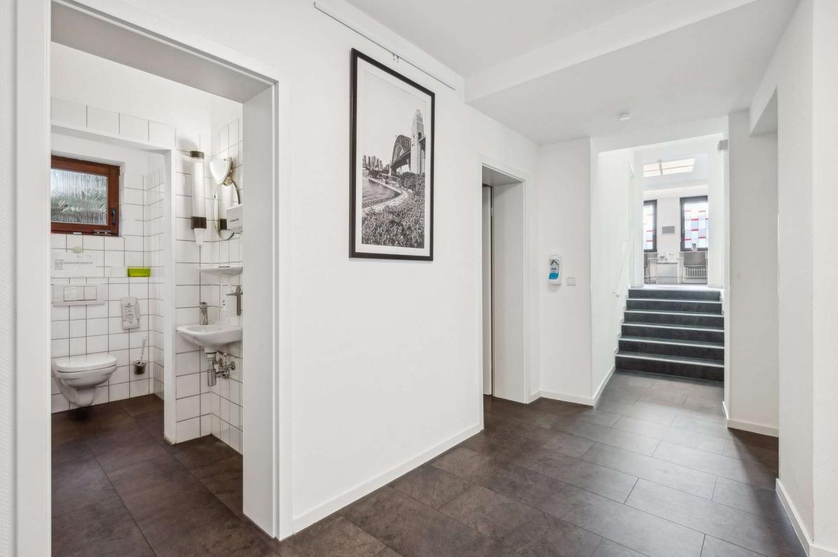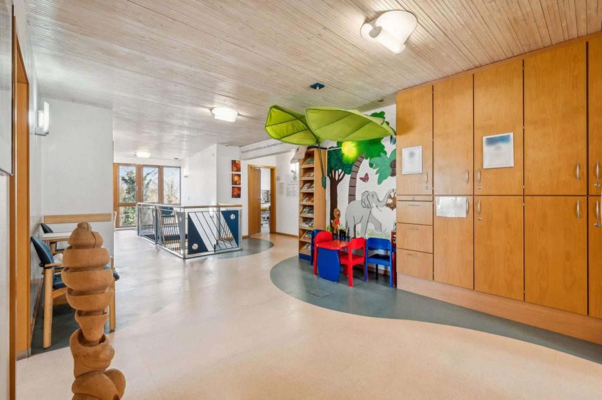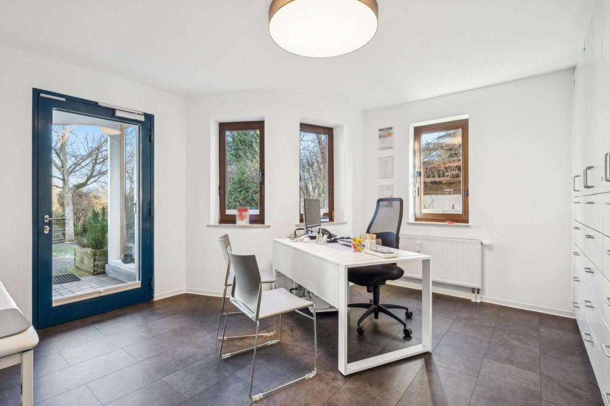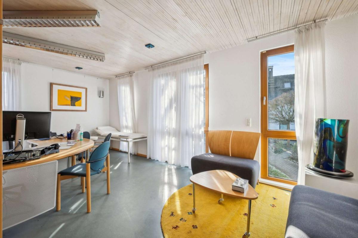Das Hinterhaus wurde 1998 in moderner, nachhaltiger Holzständerbauweise errichtet und ergänzt das Ensemble funktional wie wirtschaftlich ideal. Im Untergeschoss stehen sieben Doppelparker zur Verfügung. Die Hauptflächen sind an ein Ärztezentrum mit langfristigem Mietvertrag bis zum 31.12.2033 vermietet. Zusätzlich ist eine kleinere Einheit an eine Fußpflege- bzw. Kosmetiknutzung vergeben, was den medizinisch-gesundheitsorientierten Schwerpunkt des Standorts sinnvoll ergänzt. Eine neue Heizungsanlage aus dem Jahr 2023 unterstreicht den guten technischen Standard. Im Dachgeschoss befindet sich eine attraktive Penthouse-Wohnung mit hochwertigem Wohnambiente und Blick ins Grüne, die das Objekt um qualitativ anspruchsvollen Wohnraum erweitert.
