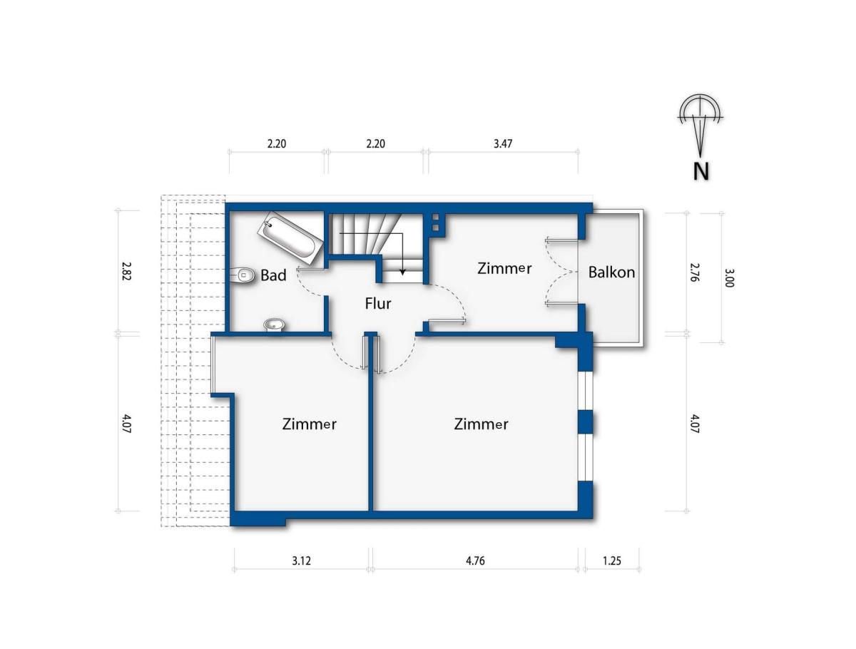 Im Obergeschoss finden Sie 3 schöne Zimmer und ein Wannenbad.
