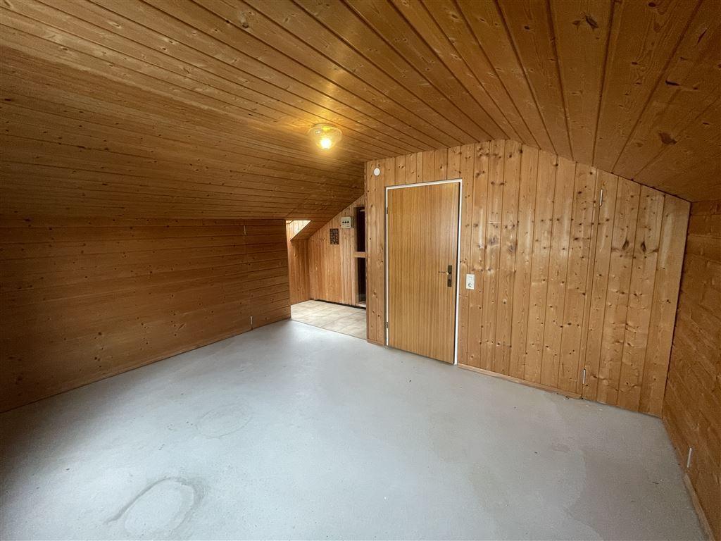 Im ausgebauten Dachgeschoss befindet sich ein offenes Studio, das vielseitig genutzt werden kann. Besonders hervorzuheben ist die integrierte Sauna, die für entspannte Stunden im eigenen Zuhause sorgt. Die Abseiten bieten zusätzlichen Stauraum.