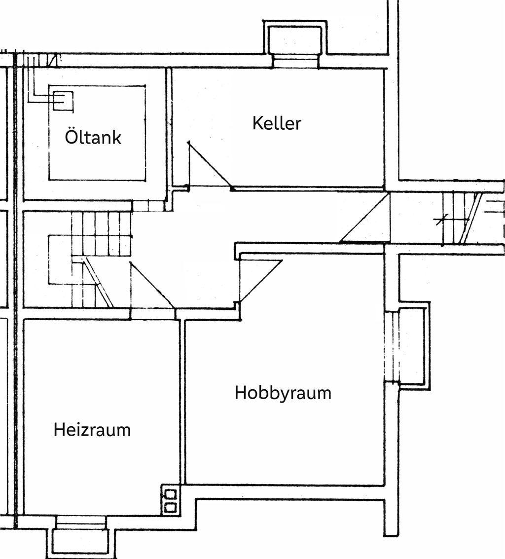 Der Keller beherbergt neben dem Heizraum und dem Öltank einen weiteren Kellerraum sowie einen Hobbyraum.