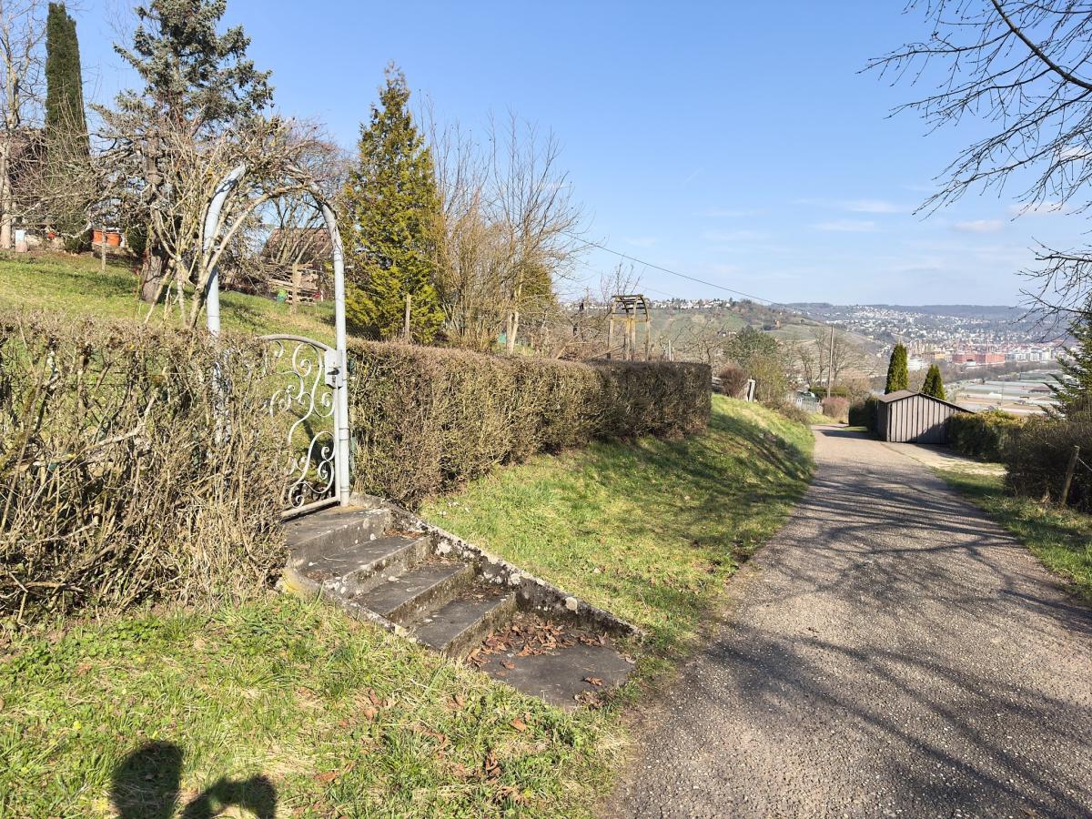 Gemütliches Gartengrundstück mit Häusle bebaut! Aussichtslage und Kfz-Stellfläche