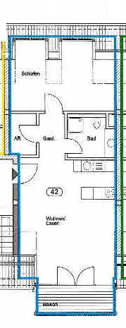 Schöner Süd-Ostbalkon zum Innenbereich.