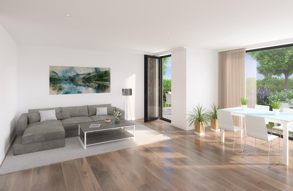 Mit einer Wohnfläche von ca. 132 m² bietet das Haus ein durchdachtes Raumkonzept mit insgesamt vier Zimmern darunter drei Schlafzimmer. Herzstück ist der offen gestaltete Wohn und Essbereich der durch große Fensterflächen viel Tageslicht und einen fließenden Übergang zur Terrasse und in den Garten überzeugt. Das moderne Wohnkonzept schafft eine helle freundliche Atmosphäre und viel Raum für individuelles Wohnen.
