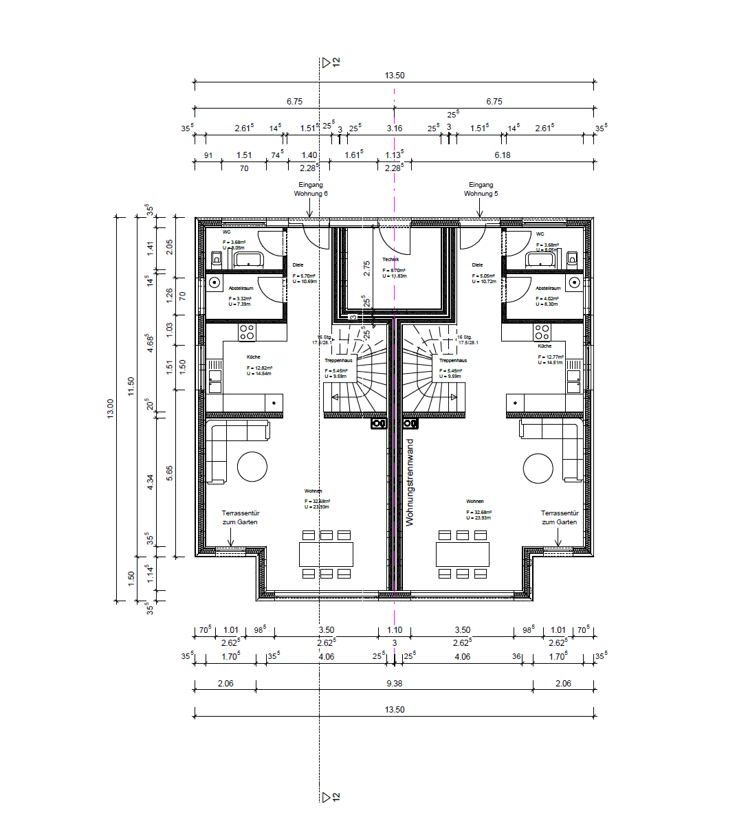 • Neubau von drei Doppelhäusern mit insgesamt sechs Doppelhaushälften