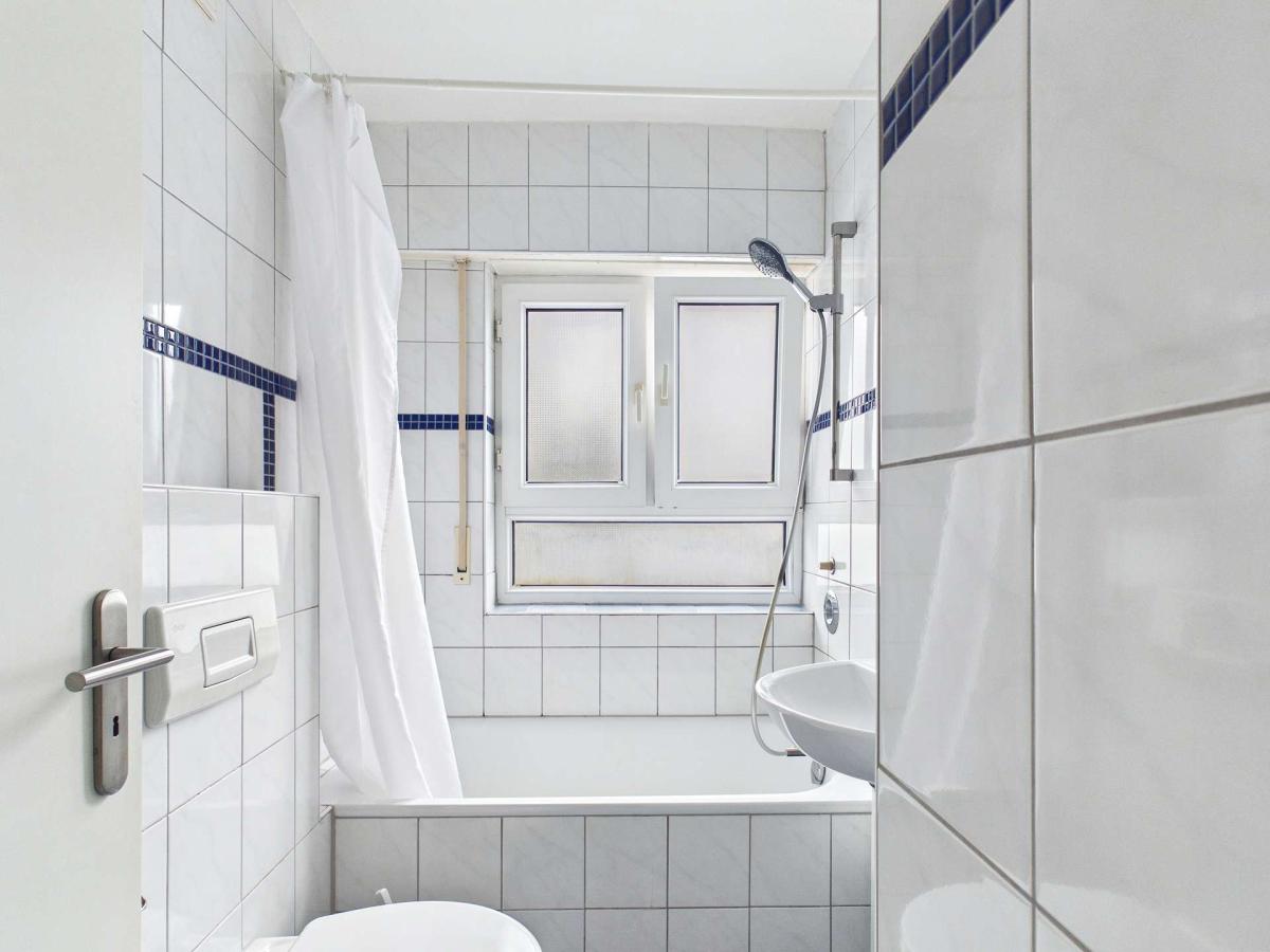 - Tageslichtbadezimmer mit Badewanne, Waschbecken und WC