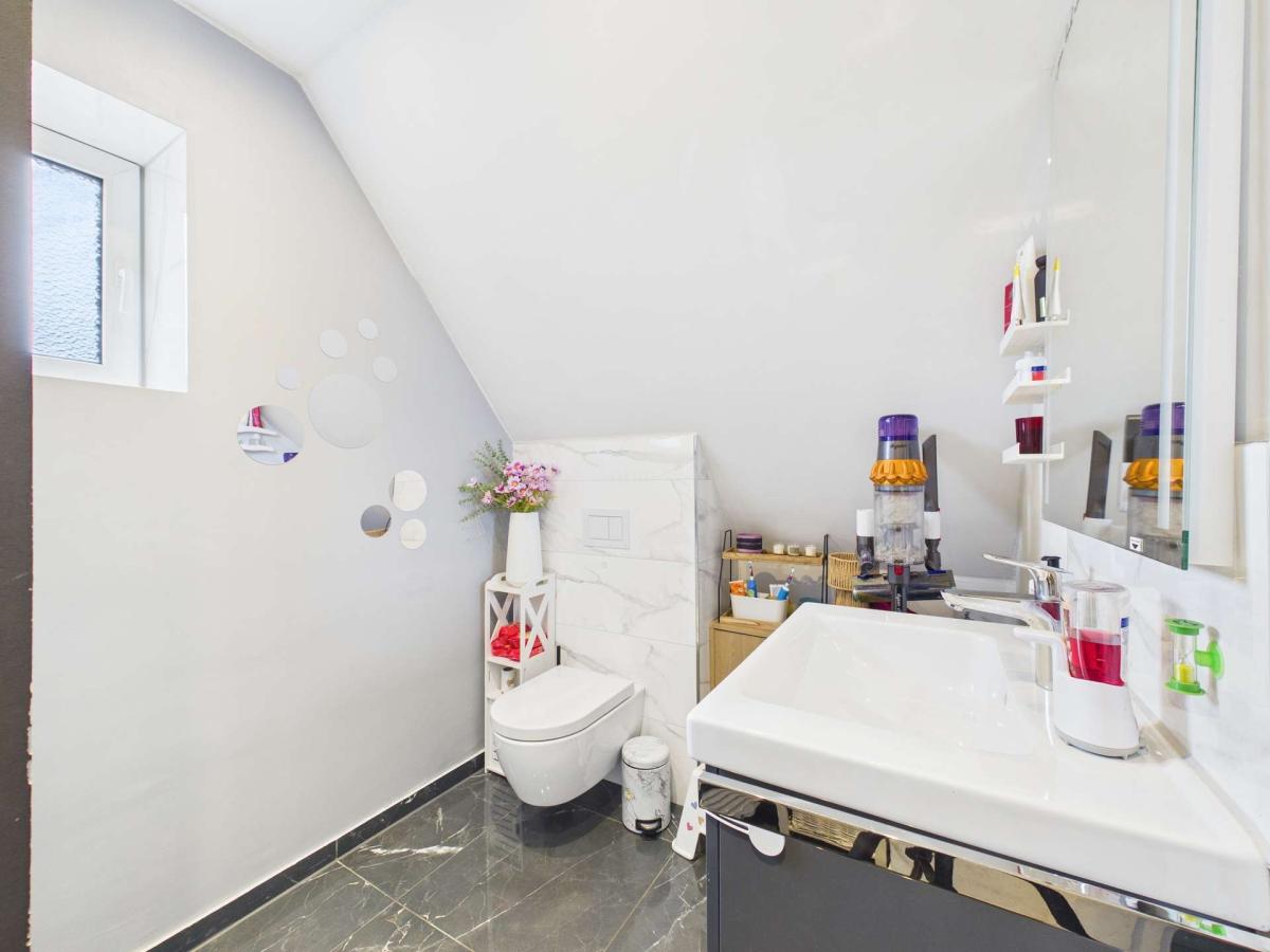 Die Wohnung im Erdgeschoss misst 107 m² und die Wohnung im Dachgeschoss 73 m², das Haus ist voll unterkellert.