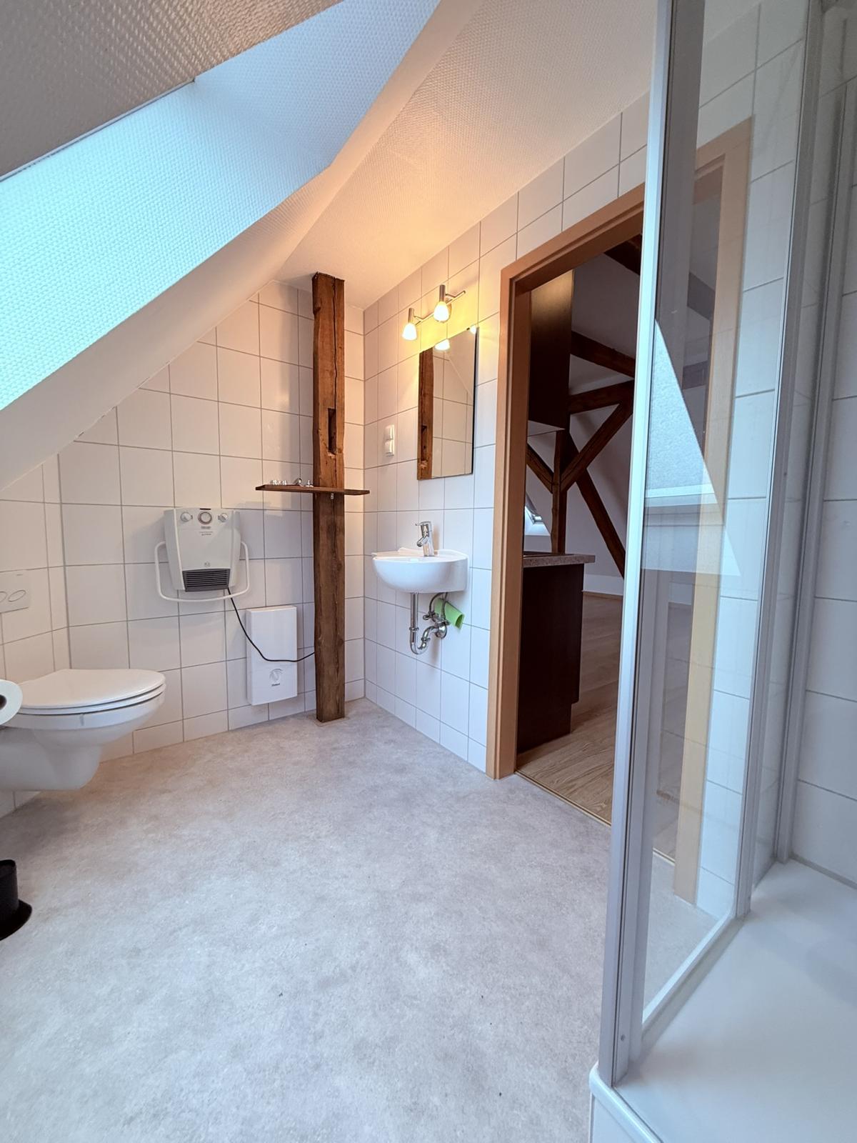 Diese kleine 1-Zimmer-Dachgeschosswohnung mit einer Wohnfläche von ca. 40 m², verfügt neben dem Wohn- und Schlafraum über ein Duschbad, welches erst vor wenigen Jahren modernisiert wurde.