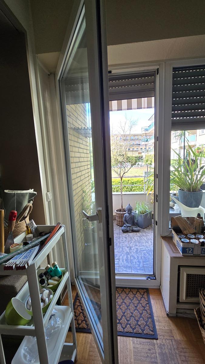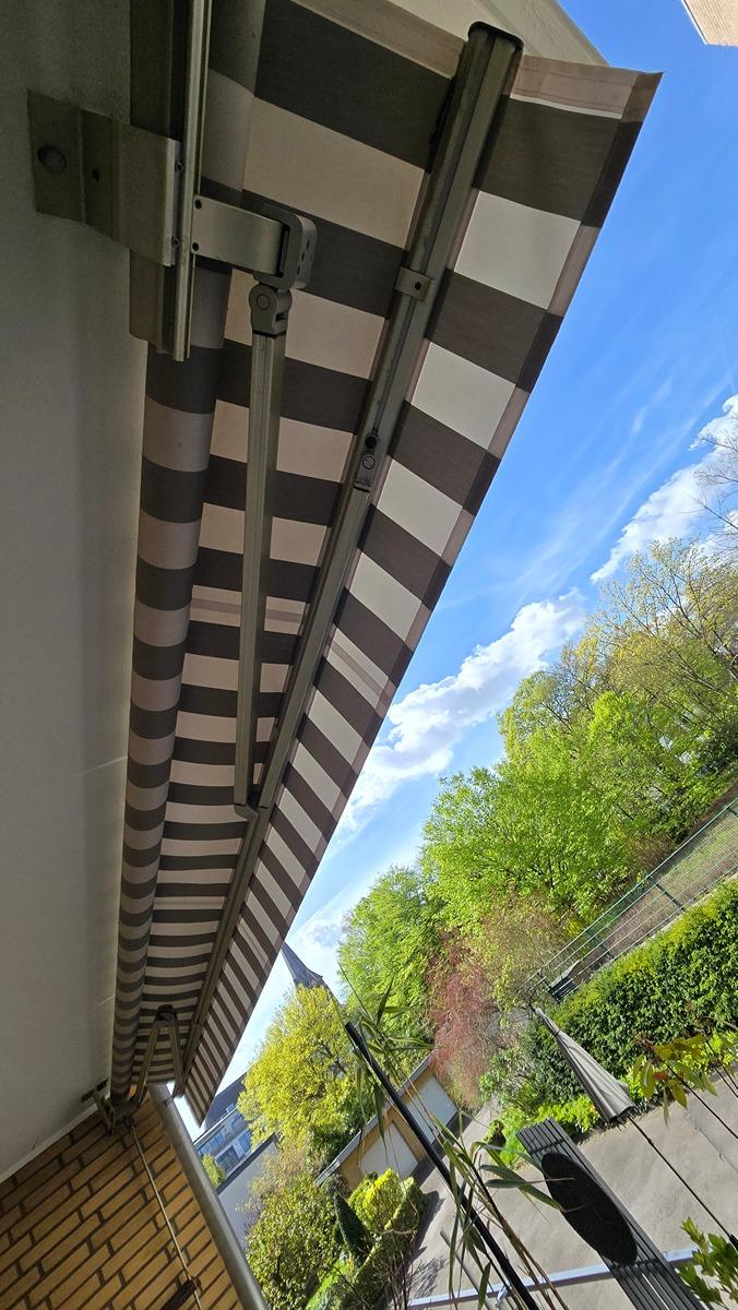 - Markise: Über die gesamte Balkonlänge, man. bedienbar (mit neuem Bezug)