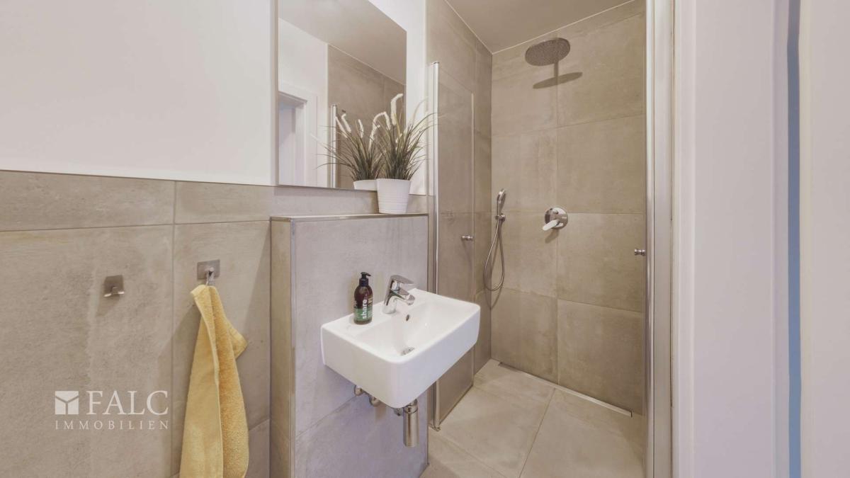 Im gesamten Haus wurde – mit Ausnahme der Badezimmer – hochwertiger Parkettboden verlegt, der den modernen und wertigen Charakter der Immobilie unterstreicht. Die Badezimmer sind mit großformatigen Fliesen ausgestattet und bieten eine moderne Ausstattung mit zwei ebenerdigen Duschen sowie einer Badewanne.