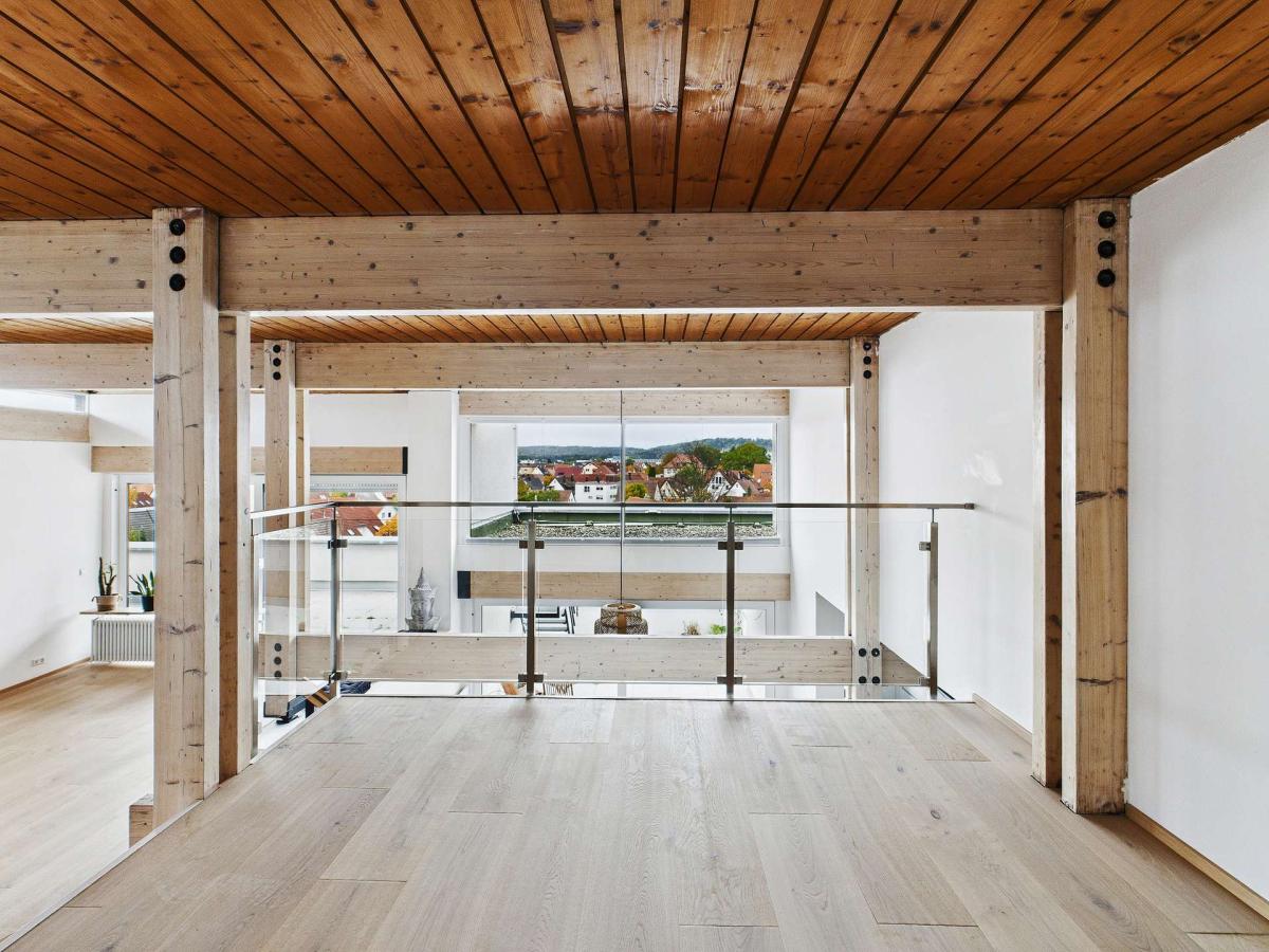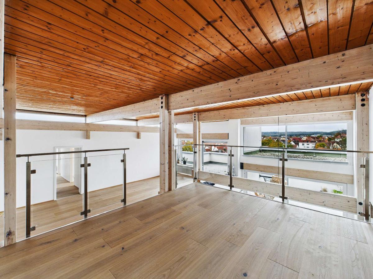 In einer ruhigen Lage von Schönaich präsentiert sich dieses Penthouse als Zuhause für alle mit Anspruch an Raum, Licht und Architektur. Die Wohnung erstreckt sich über mehrere Ebenen im Split-Level-Stil und vereint großzügiges Wohnen mit klaren Linien, modernen Materialien und eindrucksvollen Außenbereichen. Ein besonderes Highlight ist die großzügige, umlaufende Dachterrasse, die den Wohnbereich förmlich umrahmt und einen sagenhaften Ausblick ins Grüne und über die Dächer der Umgebung bietet – ein exklusives Freiluftparadies mit hoher Aufenthaltsqualität.