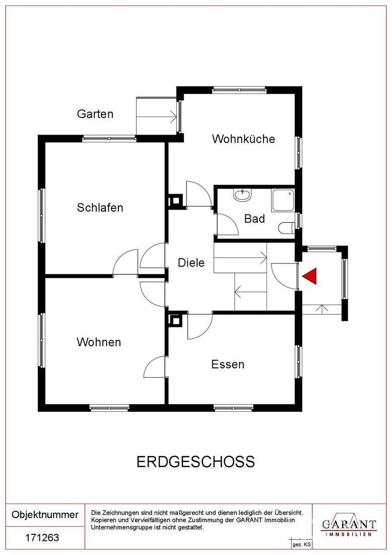 EG: Wohnzimmer, Esszimmer, Schlafzimmer, Essküche,