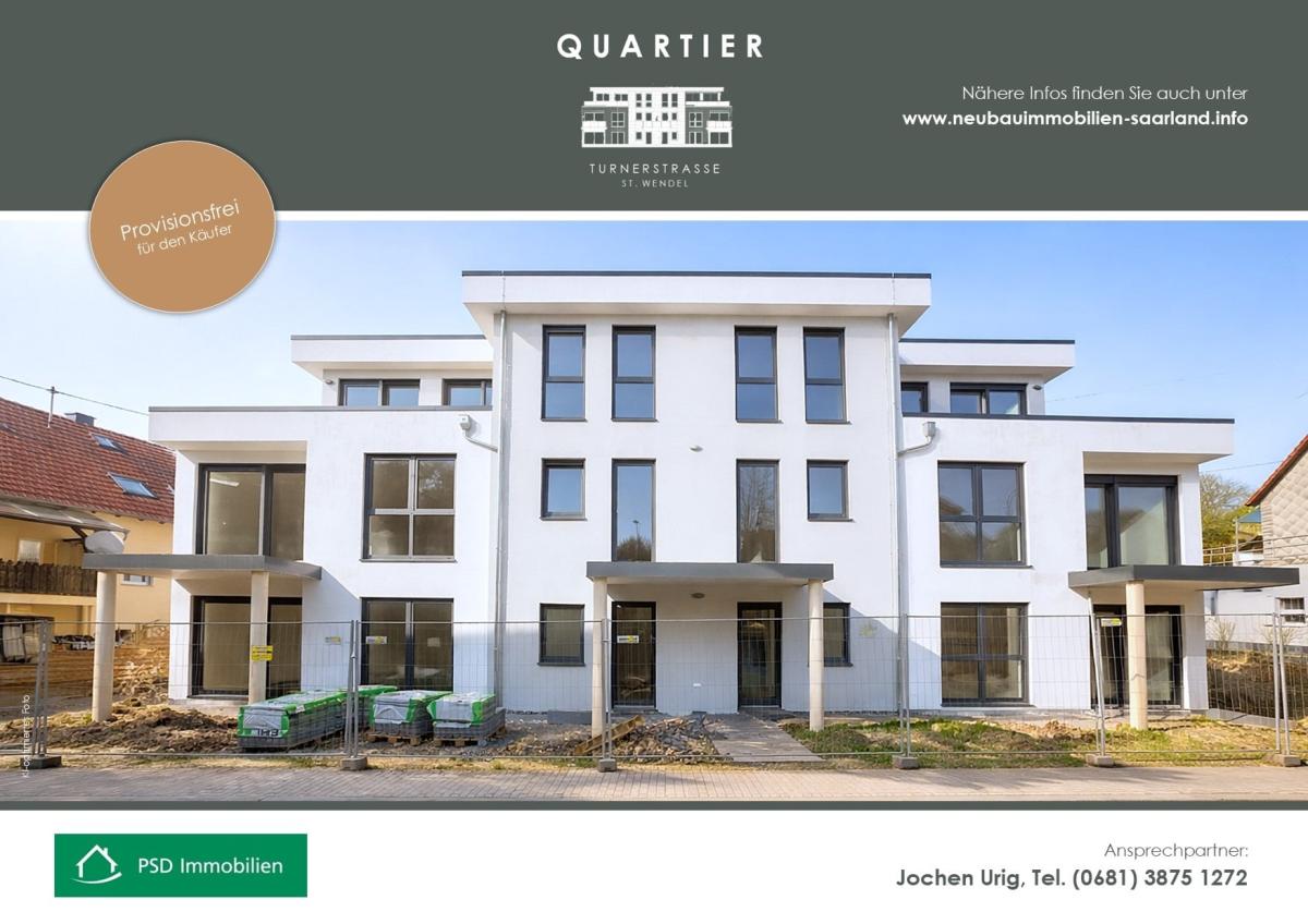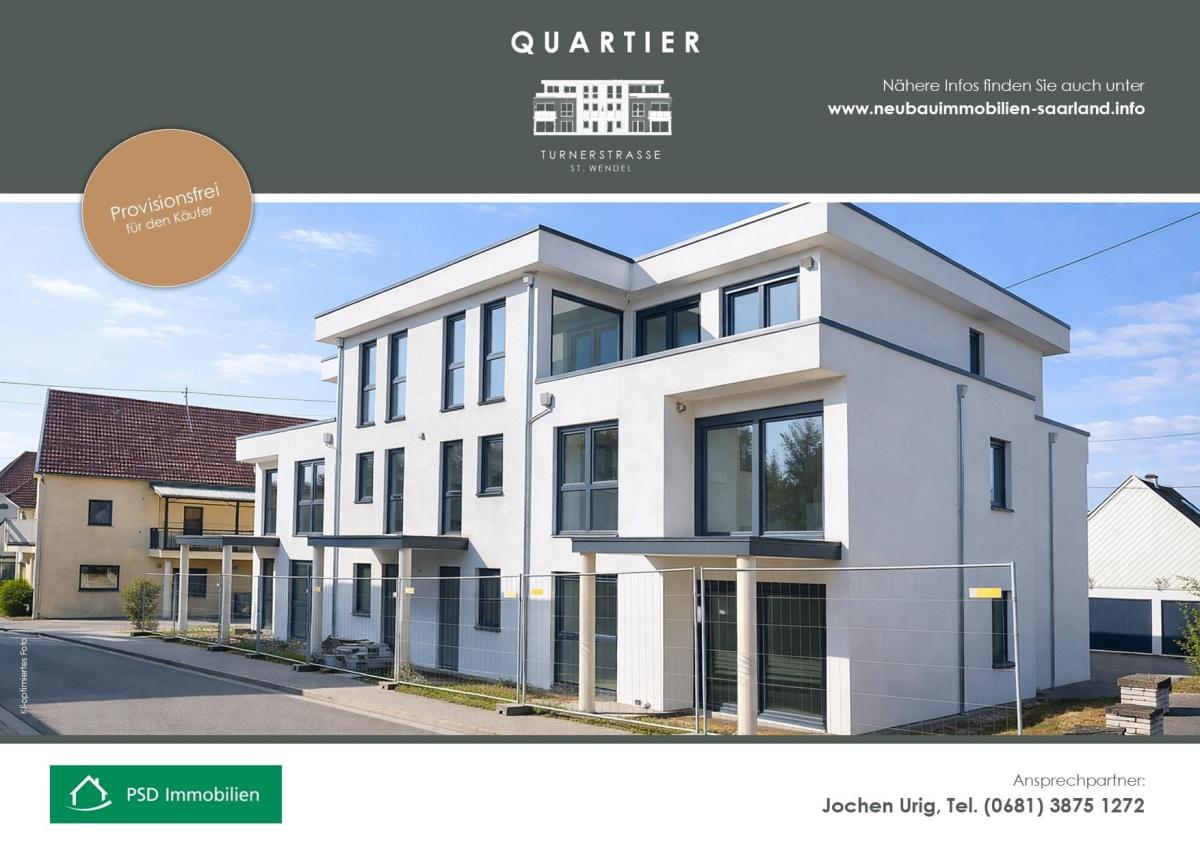 Möchten Sie sich schon bald den Traum von den eigenen vier Wänden erfüllen? Dann sind Sie im QUARTIER TURNERSTRASSE I ST. WENDEL goldrichtig. Die moderne Architektur richtet sich an Menschen, die einen individuellen Wohnstil, klare Linien, viel nutzbare Wohnfläche und einen hohen Ausbaustandard schätzen.