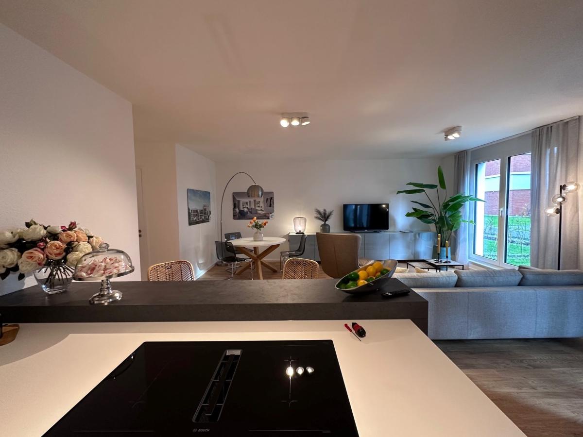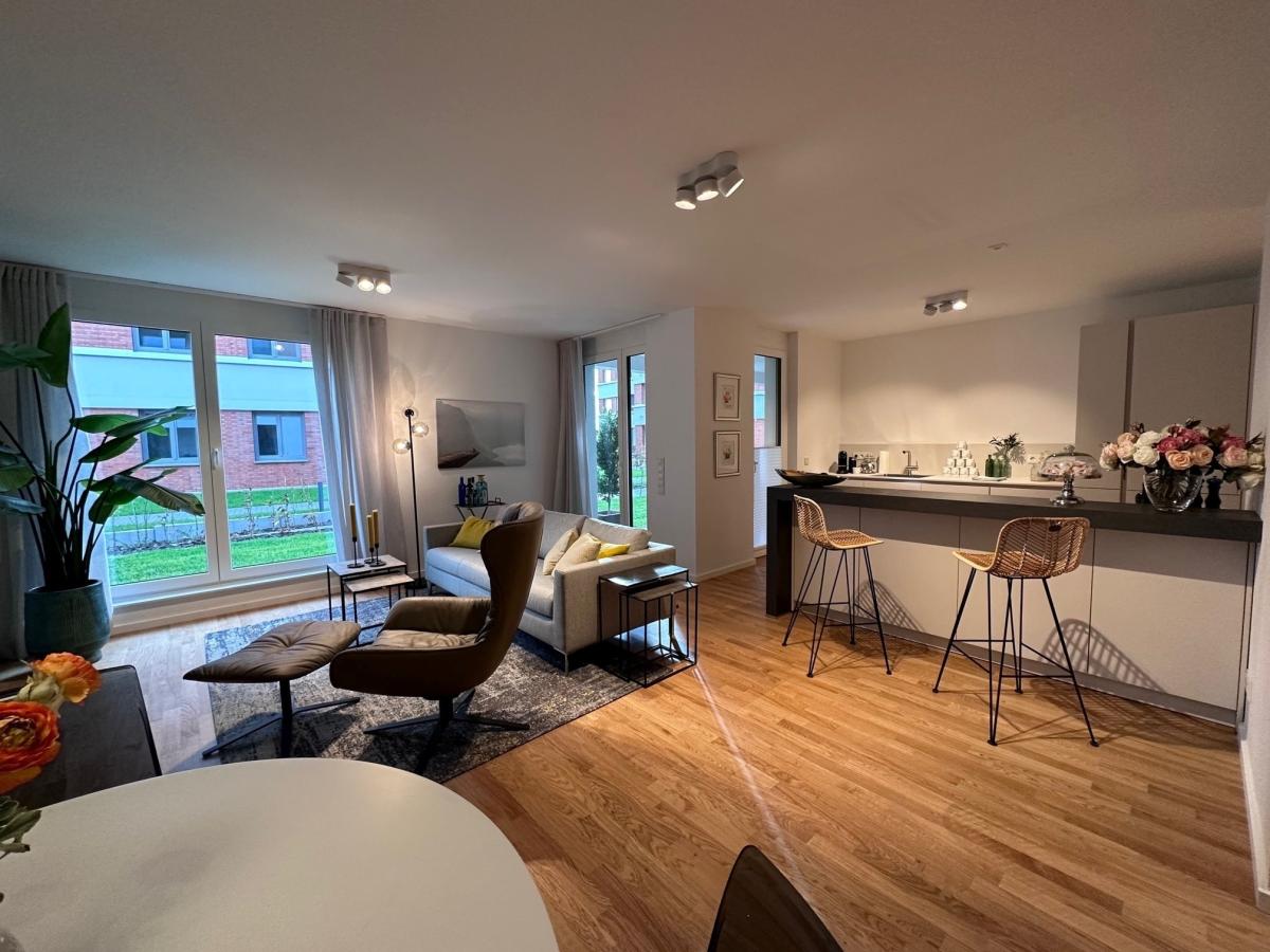 4-Zimmer-Eigentumswohnung im 1. Obergeschoss mit Abstellraum im Untergeschoss. Tiefgaragen-Stellplatz zzgl. 26.000 Euro (inkl. Wallbox).