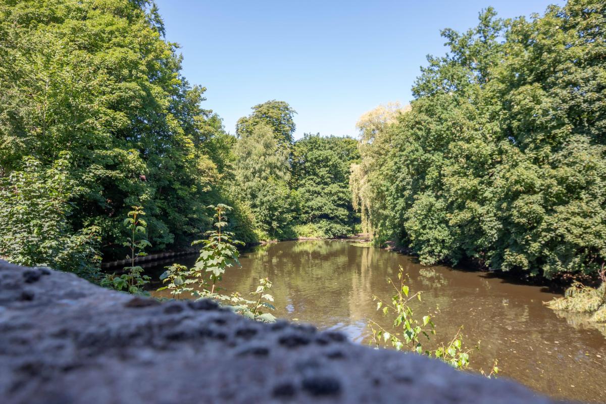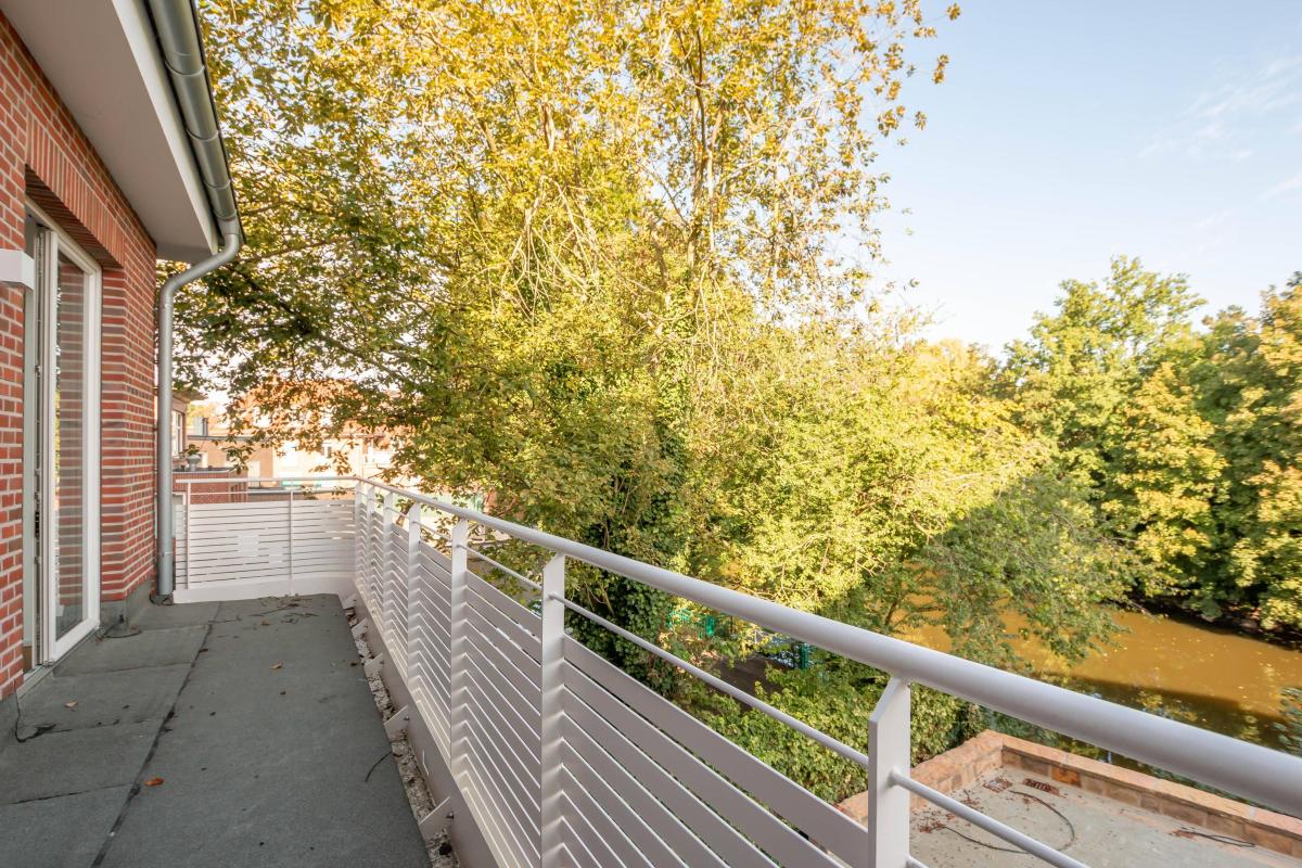 Sie betreten die Wohnung und finden geradeaus den hellen Wohnbereich mit offener Küche. Von hier aus haben Sie Zugang zum Balkon, der Ihnen einen einzigartigen und wunderschönen Blick in Richtung Stadtpark und Kornmühlenwehr bietet.