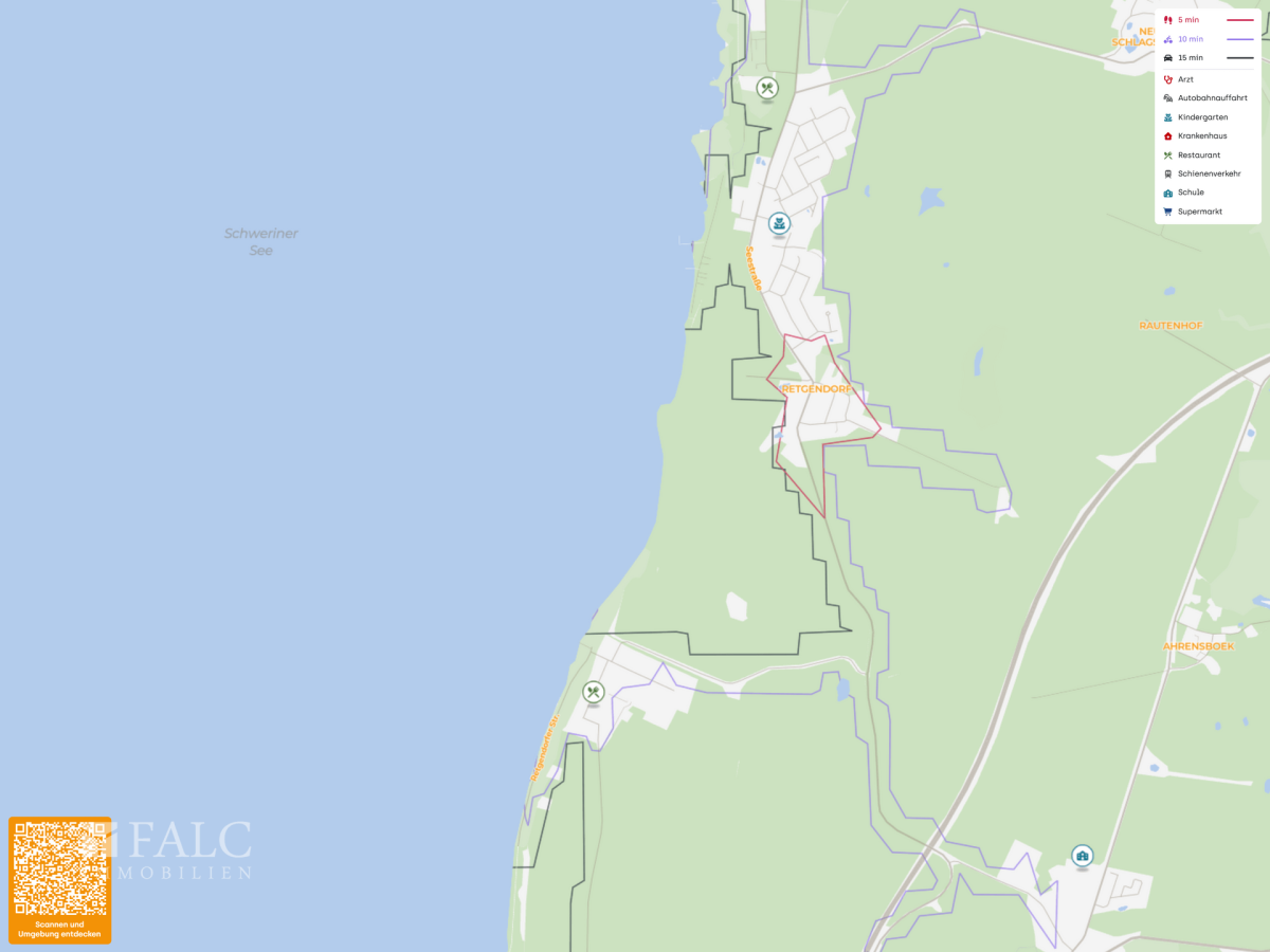 Retgendorf ist ein kleines, ruhig gelegenes Dorf im Nordosten Deutschlands und befindet sich in unmittelbarer Nähe zum Ufer des Schweriner See. Die Umgebung ist geprägt von einer sanft hügeligen Landschaft, weitläufigen Wiesen sowie dichten Wäldern und bietet eine besonders reizvolle Kulisse für Naturliebhaber und Erholungssuchende.