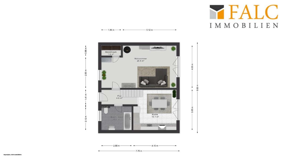 Die in diesem Exposé enthaltenen Fotos können ganz oder teilweise unter Einsatz digitaler Bildbearbeitung und/oder künstlicher Intelligenz erstellt oder optimiert worden sein. Sie dienen ausschließlich der Veranschaulichung. Verbindlich sind nur die tatsächlichen Gegebenheiten bei einer Besichtigung vor Ort.