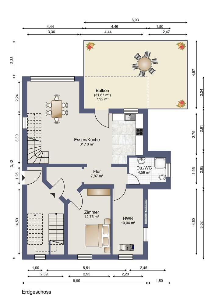• Hauswirtschaftsraum (HWR): 10,04 m²