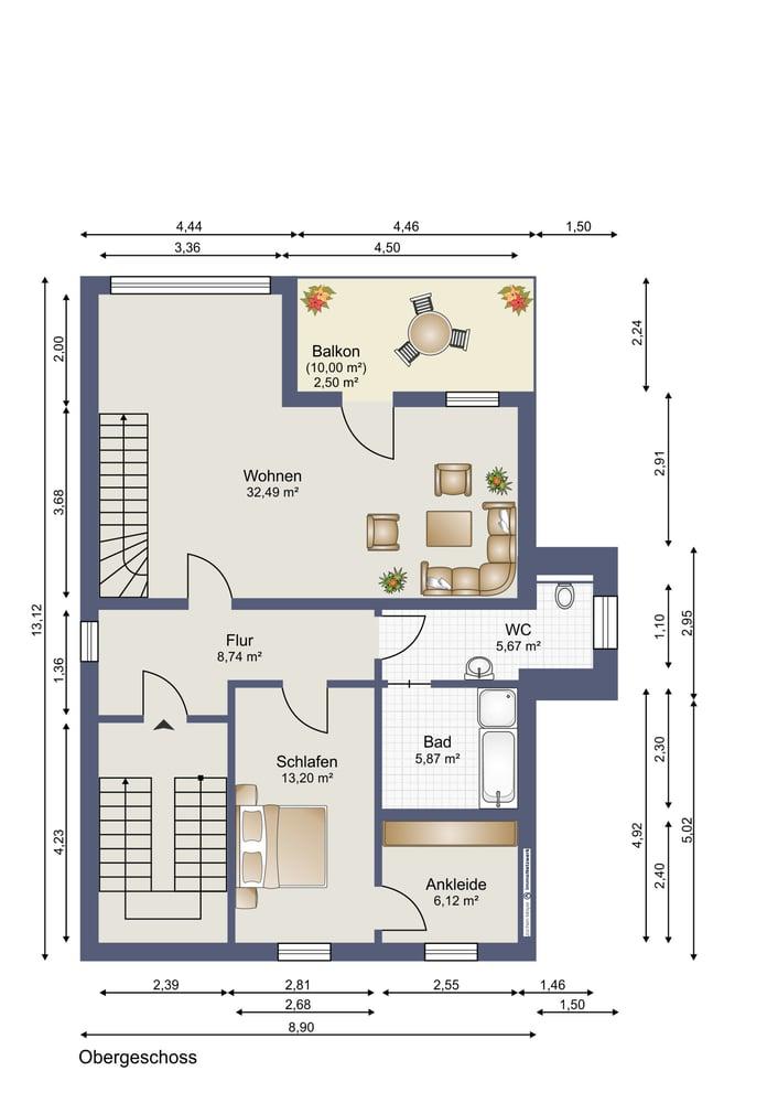 – Schlafen: 13,20 m², gemütlich und ruhig gelegen