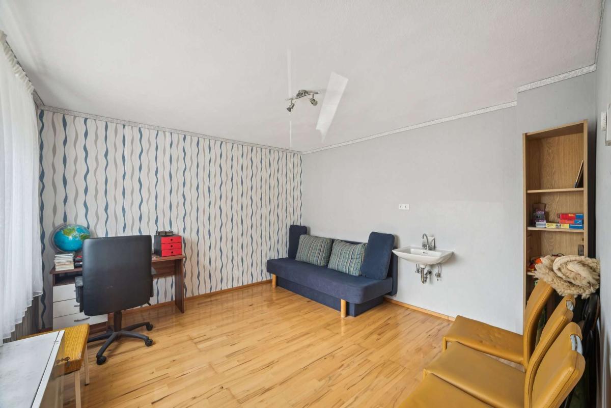 Über die weiterführende Holztreppe gelangen Sie zum Dachgeschoss. Hier stehen Ihnen ein zusätzliches Zimmer und ein Speicherraum zur Verfügung.