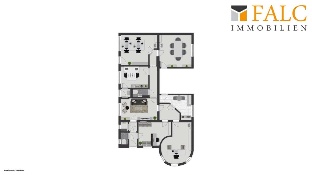 Insgesamt ergibt sich eine funktional aufgebaute Einheit mit mehreren nutzbaren Praxisräumen und einer klaren Trennung von Patienten- und Mitarbeiterbereichen.
