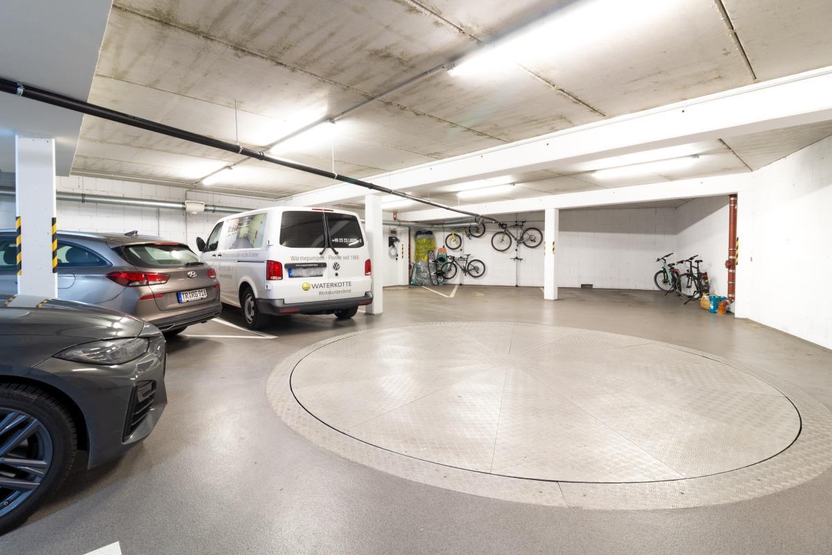 Im Erdgeschoß befindet sich eine Parkgarage für 6 Fahrzeuge mit exklusiver Drehscheibe einschließlich Fernsteuerung. Es besteht die Möglichkeit einen Garagenstellplatz für 25.000 EUR zu erwerben. Die Wohnung ist kurzfristig beziehbar.