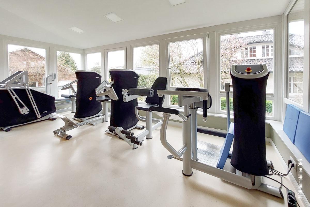 Der derzeitige Fitnessraum ist mit einer Klimaanlage ausgestattet, was für ein angenehmes Raumklima sorgt. Das Gebäude ist vollunterkellert und bietet dadurch zusätzlichen Stauraum.