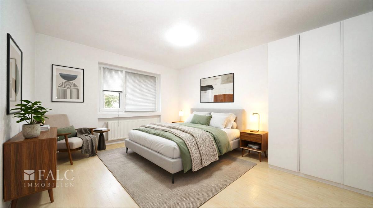 Bitte beachten Sie, dass wir aus Rücksicht auf die Privatsphäre der aktuellen Mieter die Möblierung der einzelnen Räume visualisiert haben. Dies soll Ihnen dabei helfen, sich besser vorstellen zu können, wie die Wohnung nach einer Neumöblierung eingerichtet aussehen kann.