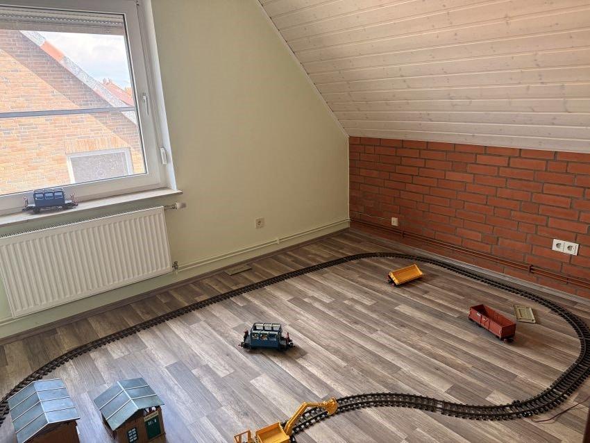 Die leerstehende Wohnung über dem Bürobereich hat eine Wohnfläche von ca. 122 m². Diese verteilt sich über zwei Etagen auf 4 Zimmer, eine Wohnküche, Diele, zwei Badezimmer und ein Gäste-WC.