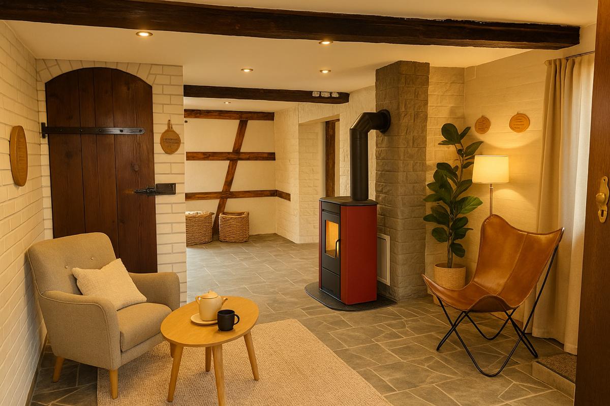 . Holzpelletheizung bzw. Kaminofen für effiziente Wärmeversorgung - Photovoltaikanlage zur Stromerzeugung