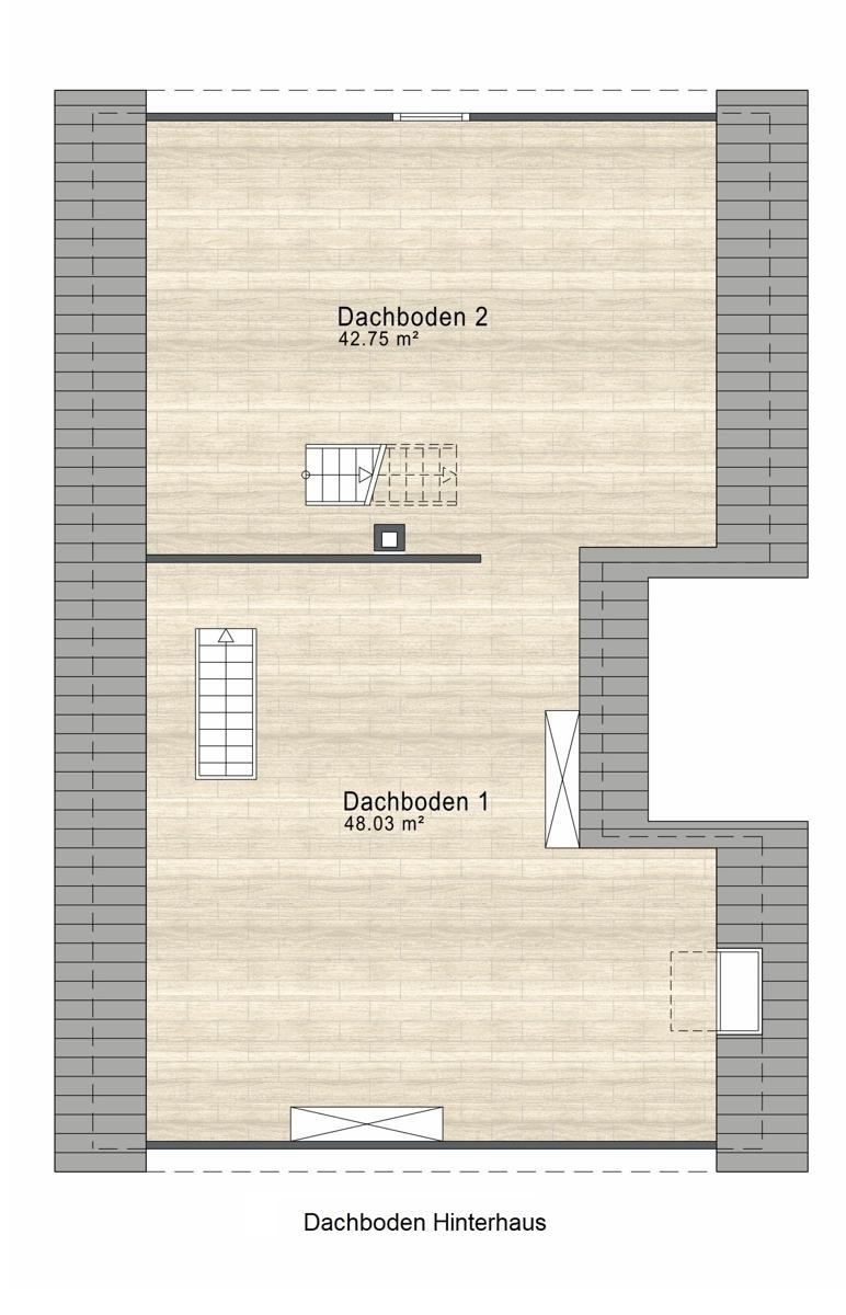 Dachgeschoss: ca. 90 m² Fläche mit hervorragender Ausbaumöglichkeit