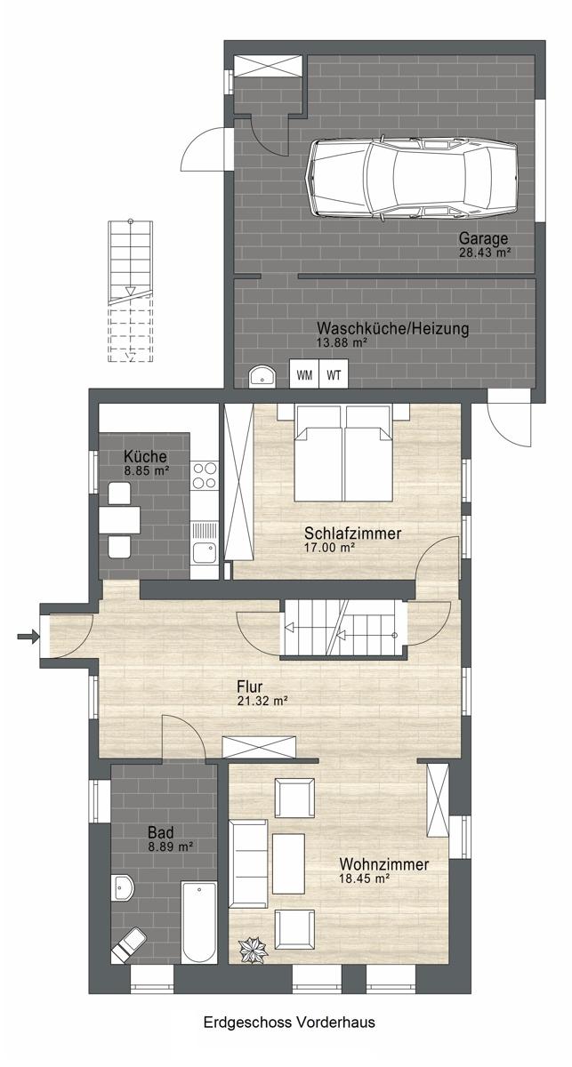Das Vorderhaus bietet derzeit 2 separate Wohnungen: