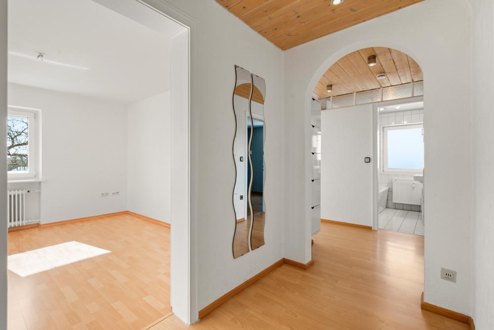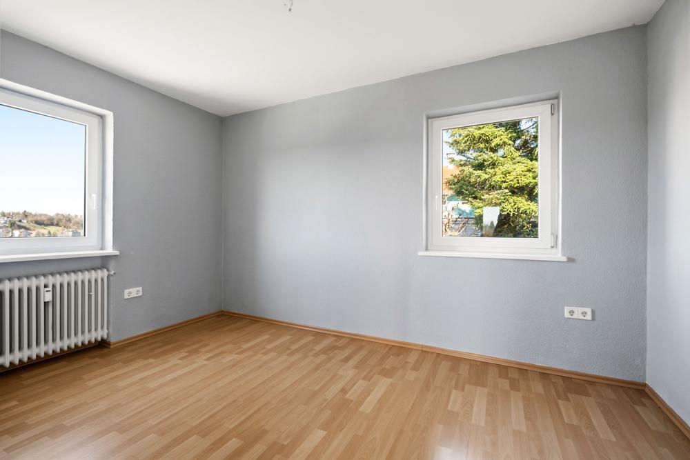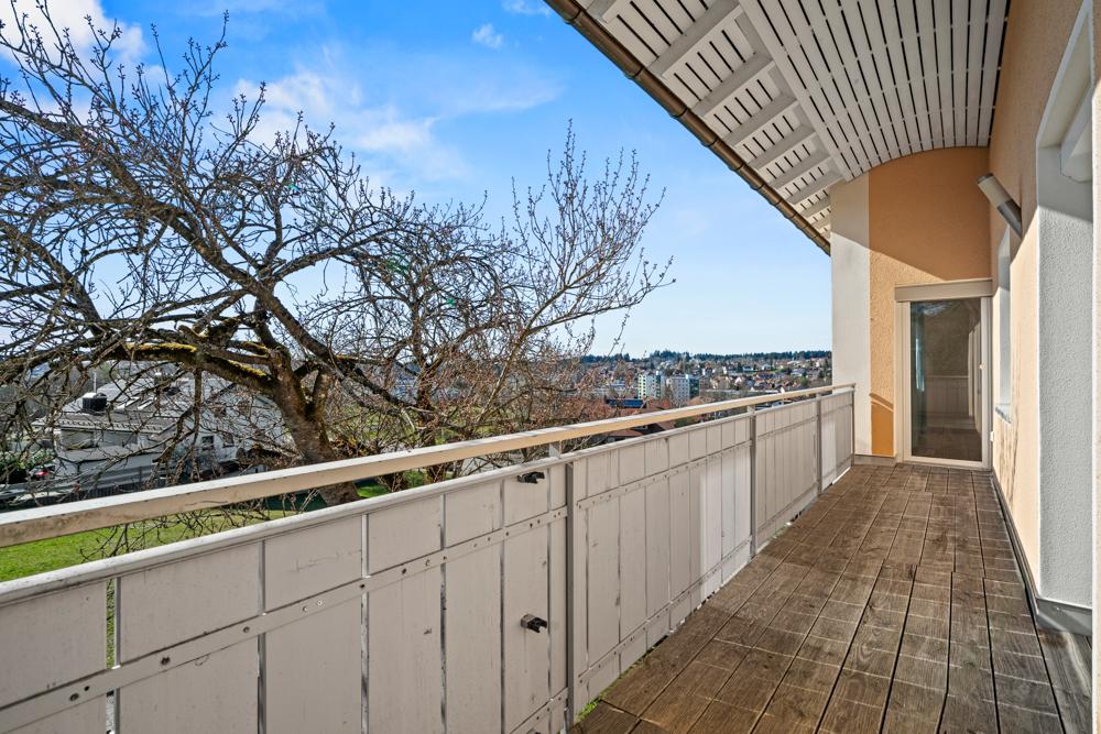 Obergeschoss: großzügige 3-Zimmer-Wohnung mit 83,50 m² Wohnfläche, Balkon und herrlichem Ausblick – aktuell leerstehend