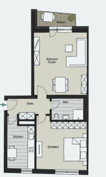 Wir bieten hier eine modernisierte 2 -Zimmer Wohnung mit einem klassischen Grundriss an - mit 65,79 qm im 2. Obergeschoss. Beim Betreten der Wohnung erreichen Sie die Diele, an welche sich alle Räume anschließen. Auf der rechten Seite des Flurs liegt die Küche. Ebenfalls an den Flur angeschlossen befindet sich das großzügige Schlafzimmer. Gegenüber erreichen Sie das Wohn-, Esszimmer mit einem Balkon zur Südseite. Das moderne Duschbad mit großflächigen Fliesen und namhaften Armaturen bietet Komfort.
