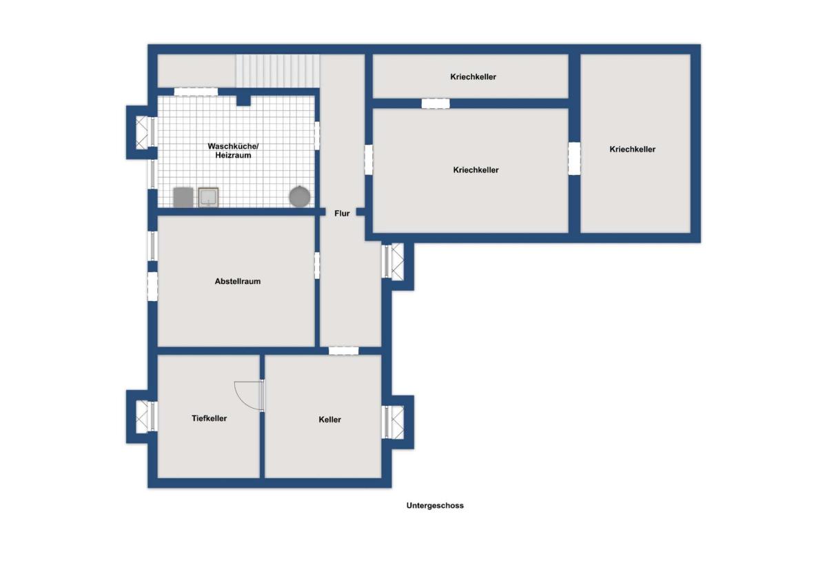 Die Treppe in den Kellerbereich befindet sich am Ende der Küche und führt in das Untergeschoss, welches zusätzliche, großzügige Nutzflächen bietet. Hier eröffnen sich vielfältige Möglichkeiten – ob als klassischer Stauraum, Hobbybereich, Werkstatt oder Fitnessraum. Zudem befinden sich im Keller die Waschküche mit integriertem Heizraum sowie ein weiterer separater Kellerraum, der zusätzlichen Platz schafft.