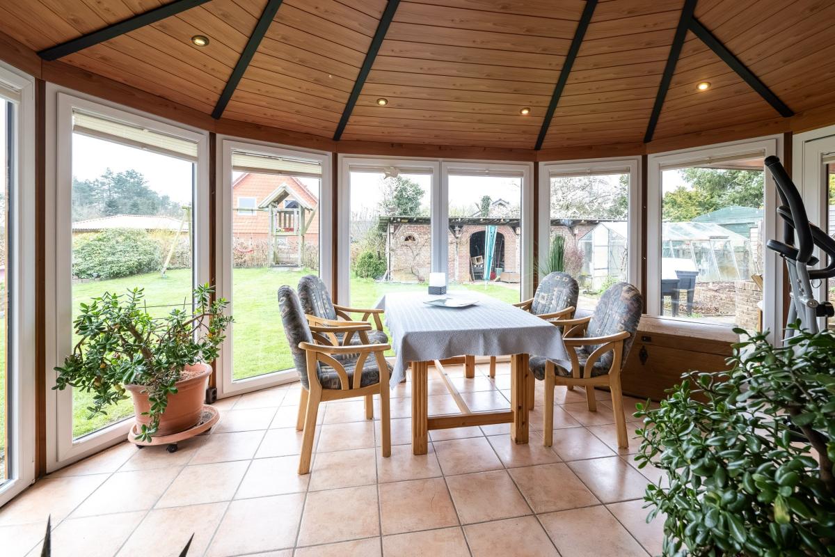 Ein weiteres Highlight ist der beheizte Wintergarten, der zusätzlichen Wohnkomfort bietet und ganzjährig genutzt werden kann. Das liebevoll und aufwendig gestaltete Gartengrundstück begeistert mit einer ansprechenden Teichanlage.
