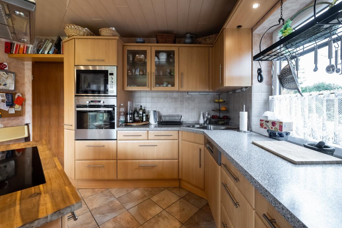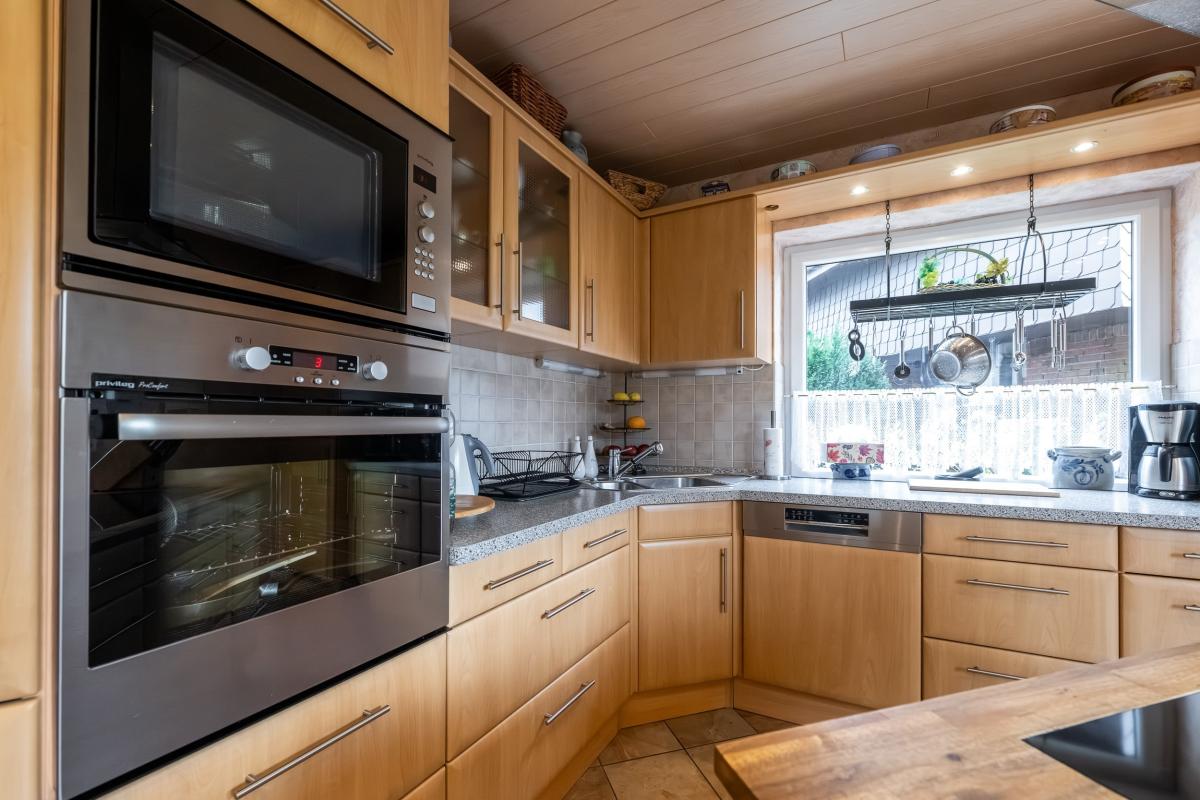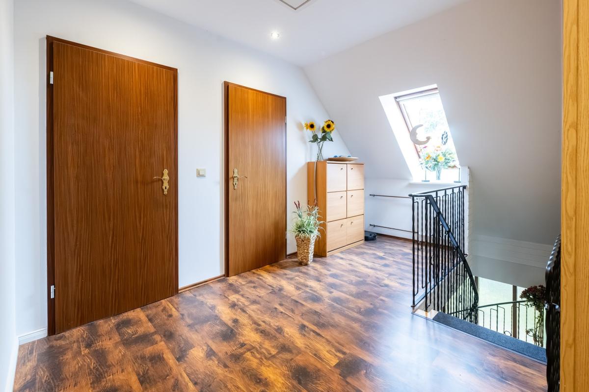 Zur Immobilie gehört außerdem eine große Garage mit ausgebautem Hobbyraum im Dachgeschoss; auch das Garagendach wurde bereits erneuert. Ein zusätzlicher Stellplatz bietet ausreichend Platz, auch für ein Wohnmobil.