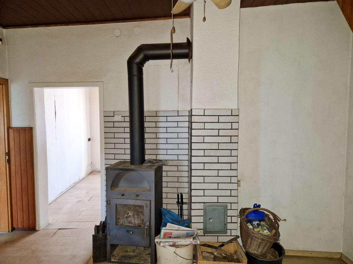 Aktuell wird das Haus über einen Ofen für Festbrennstoffe beheizt. Ein Durchlauferhitzer sorgt im Badezimmer für warmes Wasser.