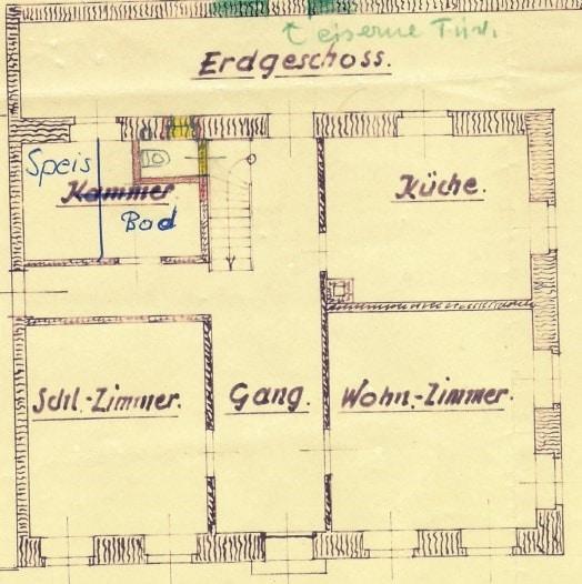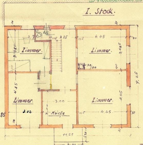 Im ersten Stock befinden sich vier weitere Räume, eine zusätzliche Küche/Abstellraum und ein WC, sodass das Haus vielfältige Gestaltungsoptionen bietet. Ergänzend ist das Gebäude teilweise unterkellert, was zusätzlichen Stauraum schafft.