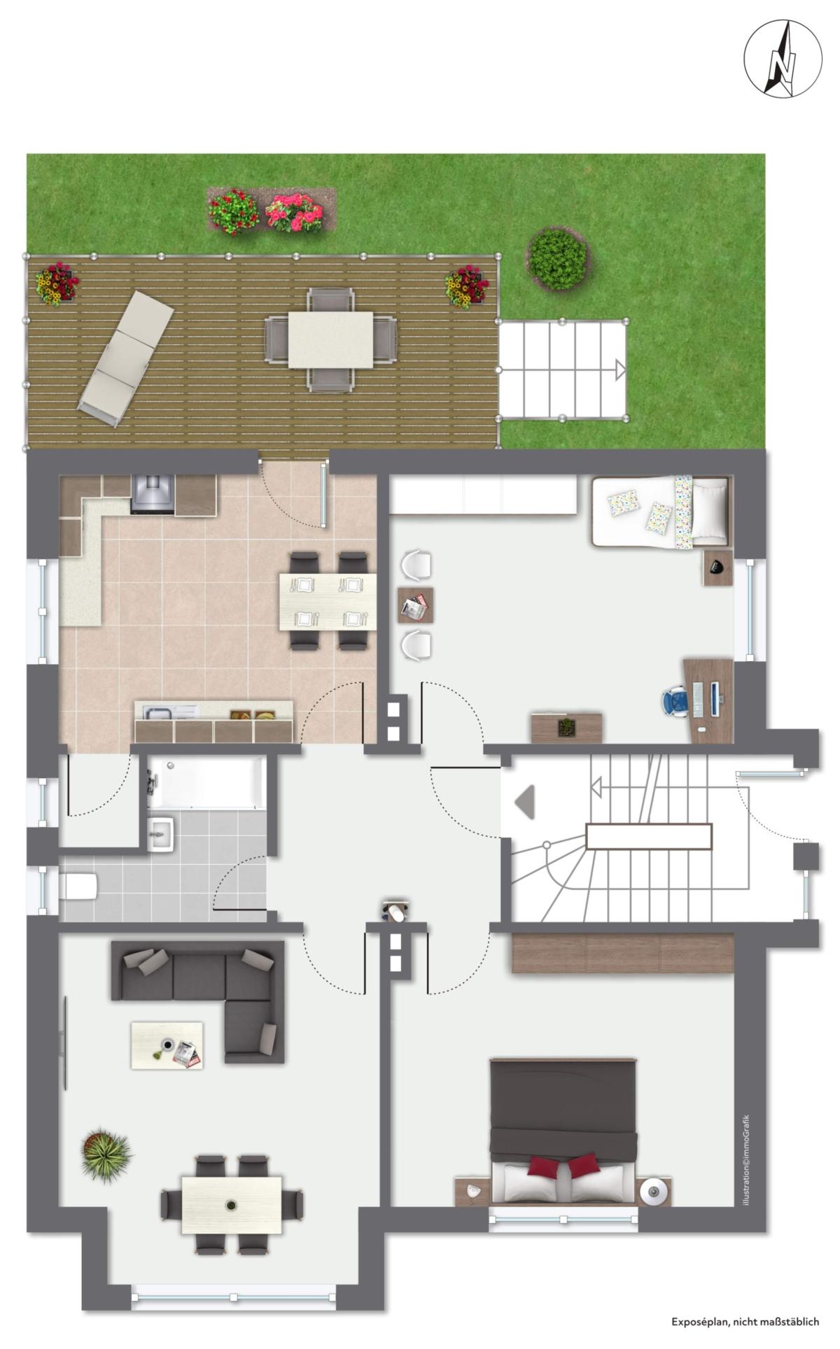 Dieses Wohnhaus mit 2-3 Einheiten verfügt über eine großzügige Wohn-/Nutzfläche von ca. 185 m² und bietet nebst Keller reichlich Platz für die ganze Familie. Vom Treppenhaus erreichen Sie alle Einheiten. Im Erdgeschoss mit ca. 70 m² Wohnfläche empfängt Sie eine große Diele, ein Wohnzimmer, eine separate Küche mit Zugang zur Terrasse, zwei Schlafzimmer oder Büro/Gästezimmer sowie ein modernisiertes Tageslichtbad. Im Obergeschoss, ebenfalls mit 70 m² Wfl., stehen Ihnen derzeit drei Zimmer, von denen zwei mit einer Schiebetür verbunden sind, ein Bad und die Küche mit Zugang zur großen Dachterrasse zur Verfügung. Ursprünglich als reines Zweifamilienhaus genutzt, wurde die Immobilie im Dachgeschoss erweitert und verfügt dort über ca. 45 m² Nutzfläche. Der Keller mit Außentreppe bietet zusätzliche Nutzfläche.