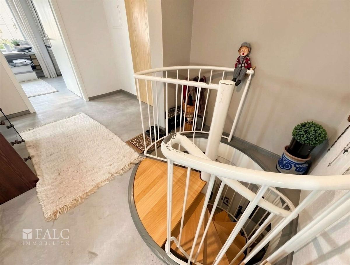 Im Erdgeschoss befindet sich die Wohnung mit insgesamt drei Zimmern und einem Badezimmer. Die Räume sind so angeordnet, dass sich unterschiedliche Nutzungen innerhalb der Einheit gut abbilden lassen, während das Badezimmer als zentraler Funktionsraum den Alltag strukturiert. Eine Terrasse mit dazugehörigem Gartenanteil ergänzt die Wohnung als zusätzlicher Außenbereich und erweitert den Wohnraum um eine angenehm nutzbare Fläche. Ein weiteres Highlight bildet der großzügige dritte Raum im Untergeschoss, welcher durch eine Wendeltreppe vom Flur aus erreichbar ist und viele Gestaltungsmöglichkeiten bietet.
