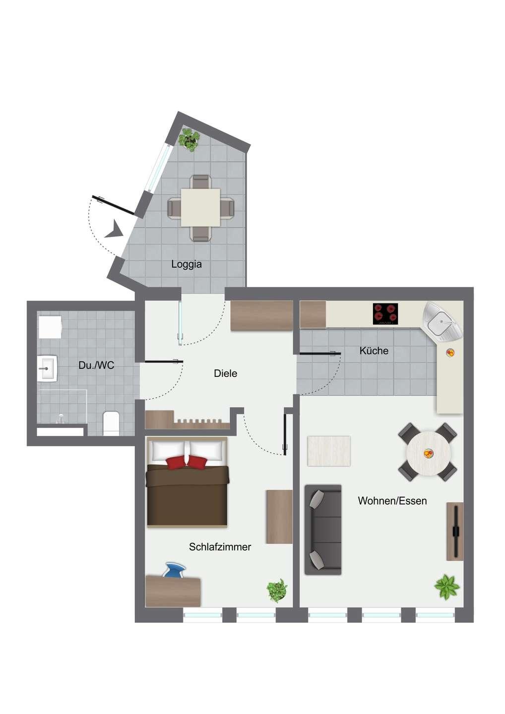 -2 Zimmer (Wohn-/Essbereich + Schlafzimmer)
