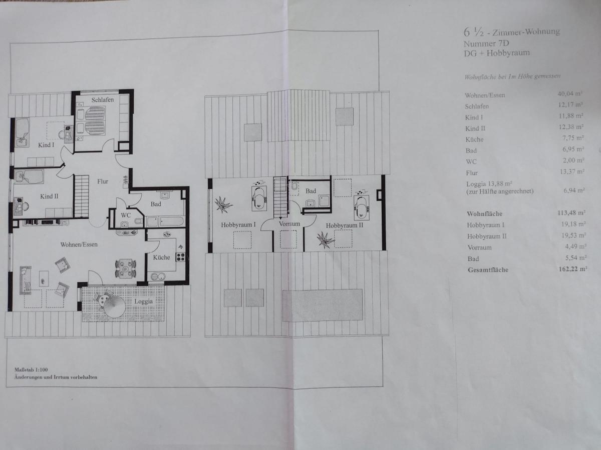 Die Wohnung ist im Untergeschoss mit Laminat- und Fliesenböden ausgestattet, im Obergeschoss mit Design-Boden. Ihr Zustand ist gepflegt und dem Baujahr entsprechend. Die Einbauküche ist im Kaufpreis enthalten.