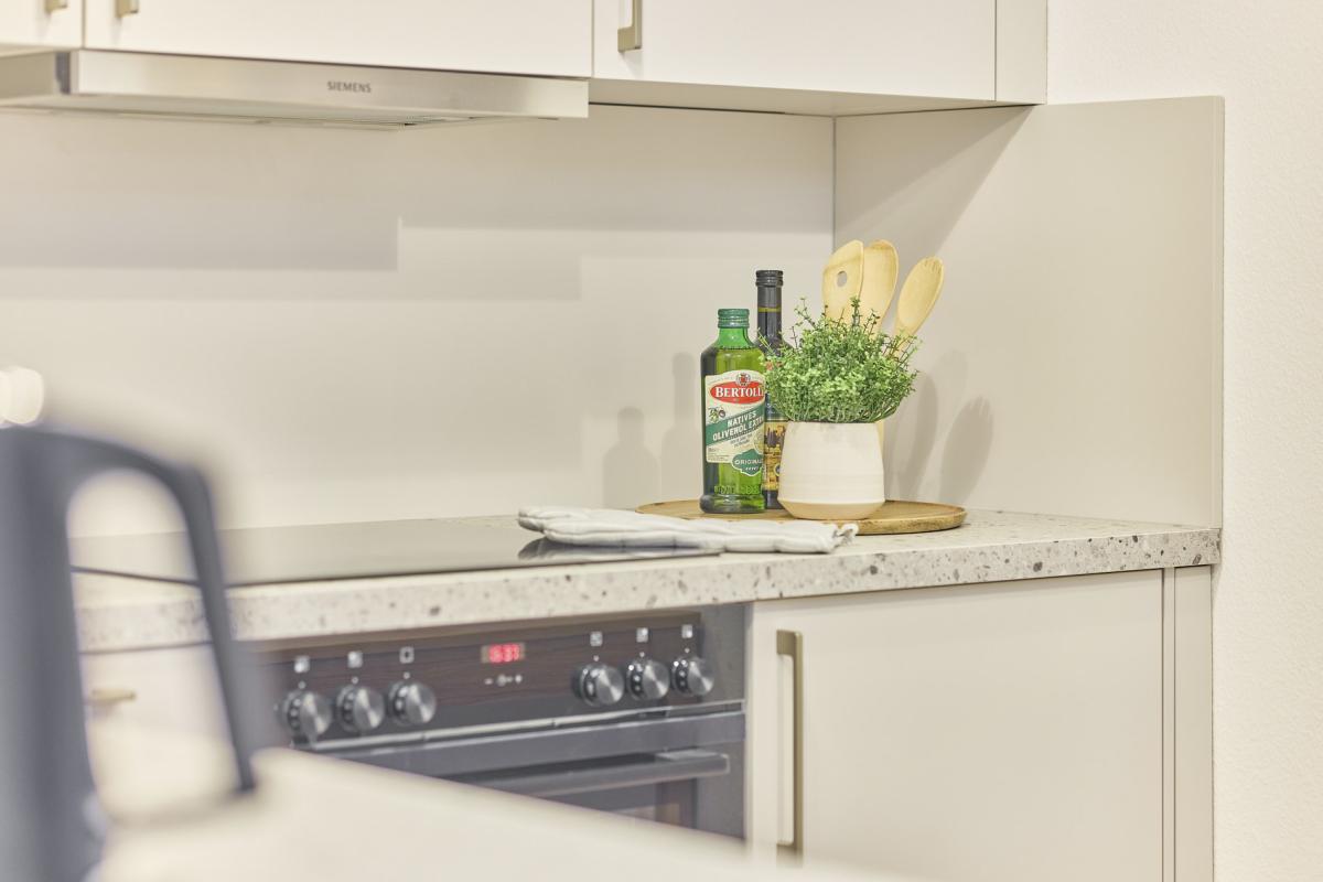 Premium furnishings, including box-spring bed, Smart TV, 250 MBit internet