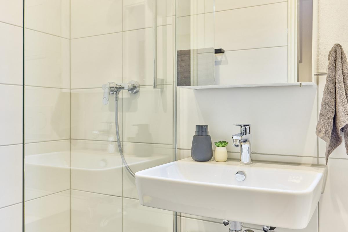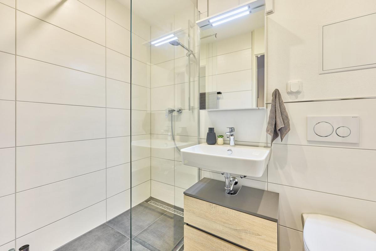 Neu gestaltetes Badezimmer, voll ausgestattete Küche