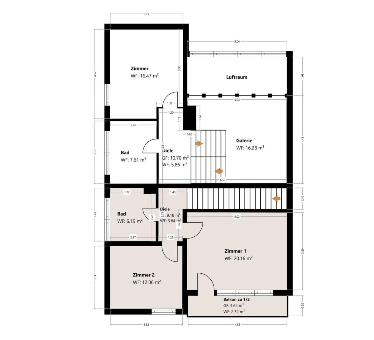 Lichtdurchflutete Räume, Galerie, breite Holztreppe, große Fensterflächen, Schreinerarbeiten, Sauna, gemütlicher Schwedenofen & Fußbodenheizung - Großzügige Nordhälfte (ca. 166 m²) ideal zur Eigennutzung, Südhälfte ( Einliegerwohnung ) mit ca. 90 m² - beide WE können auch miteinander verbunden werden.
