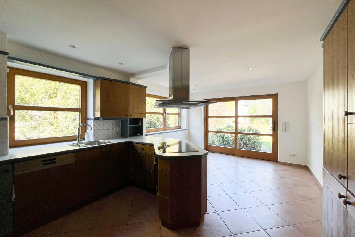 Die Südhälfte bietet als 3-Zimmer-Wohnung mit eigener Terrasse und überdachtem Balkon hohen Wohnkomfort – ideal zur Vermietung oder für Mehrgenerationenwohnen. Sie ist vollständig unterkellert, mit einer Küche, großen Fensterflächen im EG und OG sowie einem Gäste-WC ausgestattet.